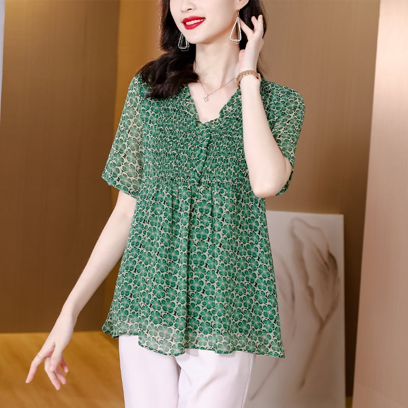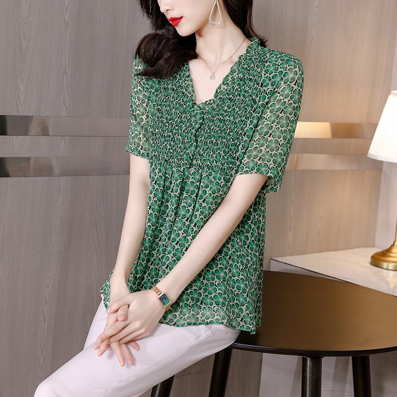 薄手レースVネックシャツ シフォントップス 大きめサイズ muto71528991240