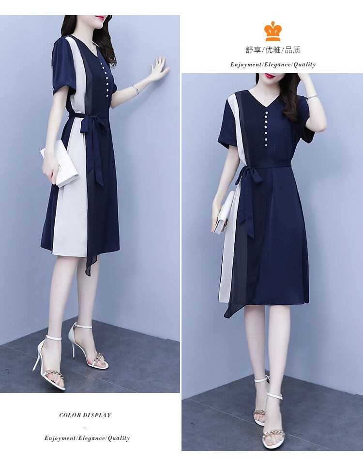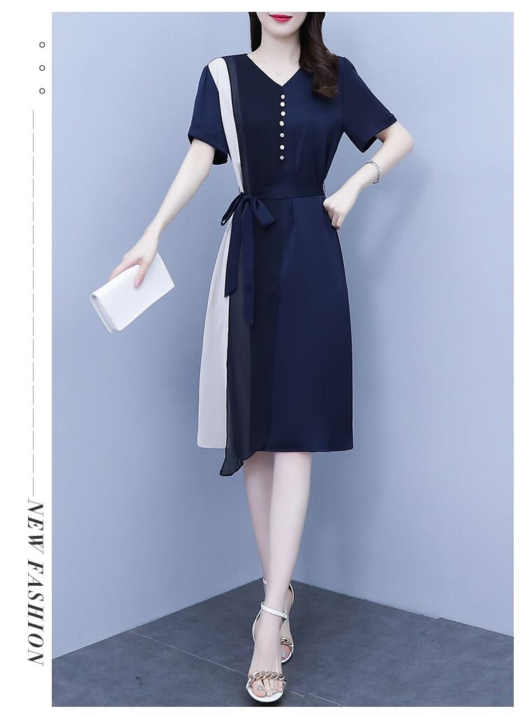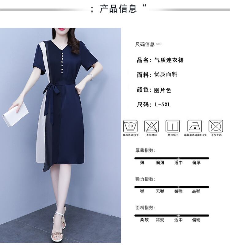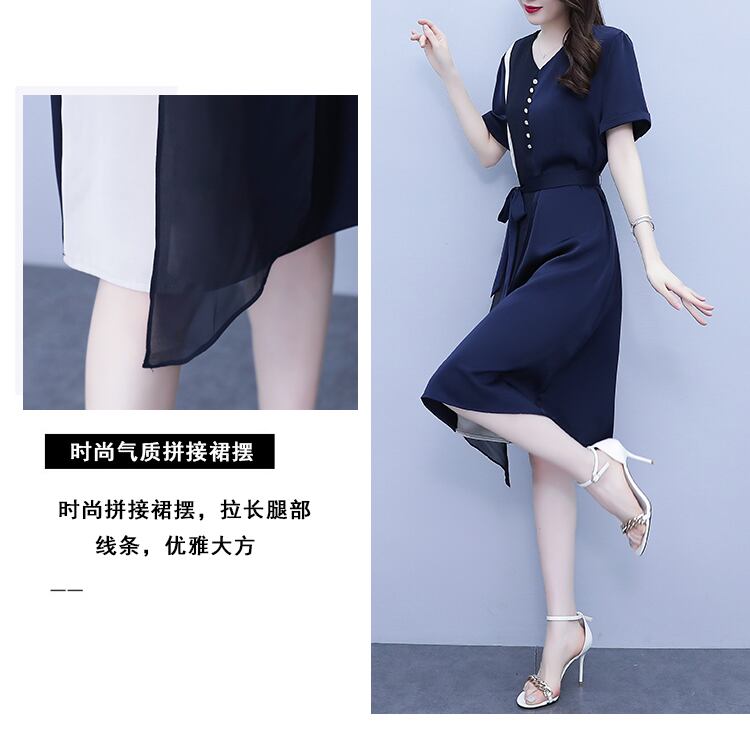 シフォンカラースカート サマードレス ウェストスリム 大きめサイズ 夏物 ステッチ muto99896031583