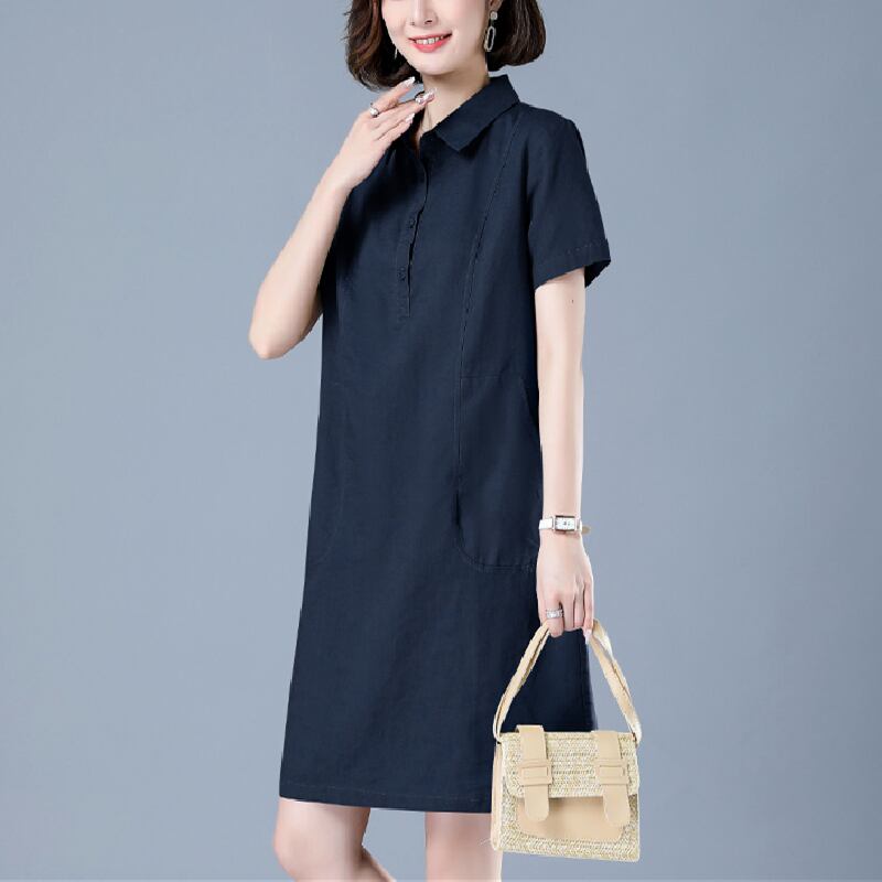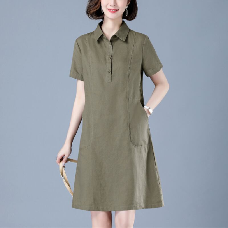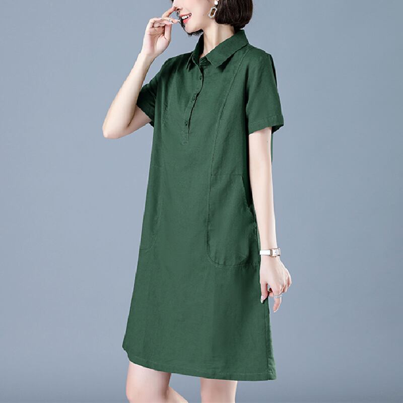 ドレス サマーカジュアルスカート シャツ カラー コットン 大きめサイズ 夏物 muto354954267
