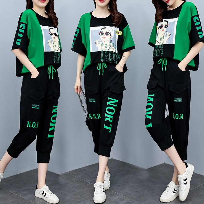 カジュアルサマースリムクロップドパンツ 大きめサイズ 夏物 muto15766964372
