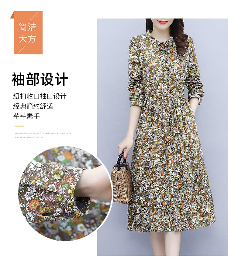 フローラルドレス スプリングオータムカジュアルスカート ロング コットン 大きめサイズ 春物 秋物 花柄 muto18707345368