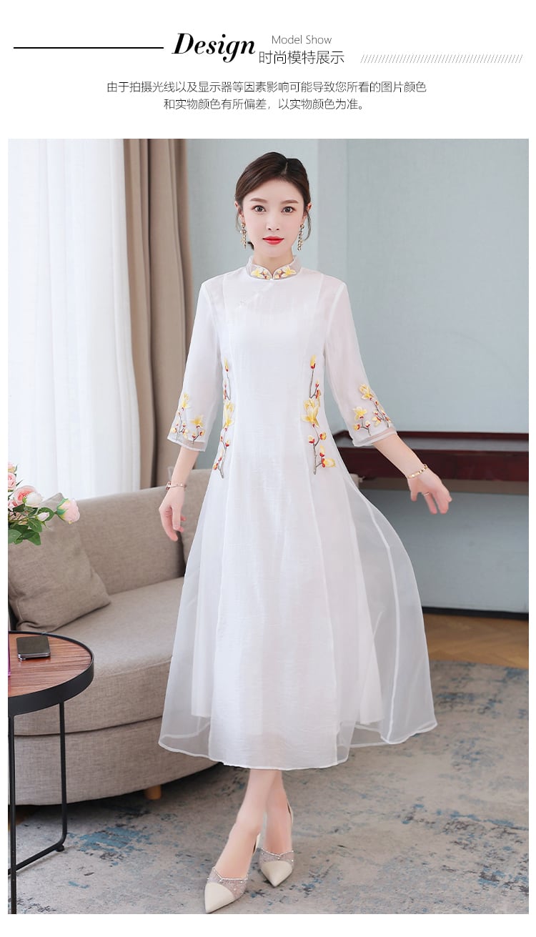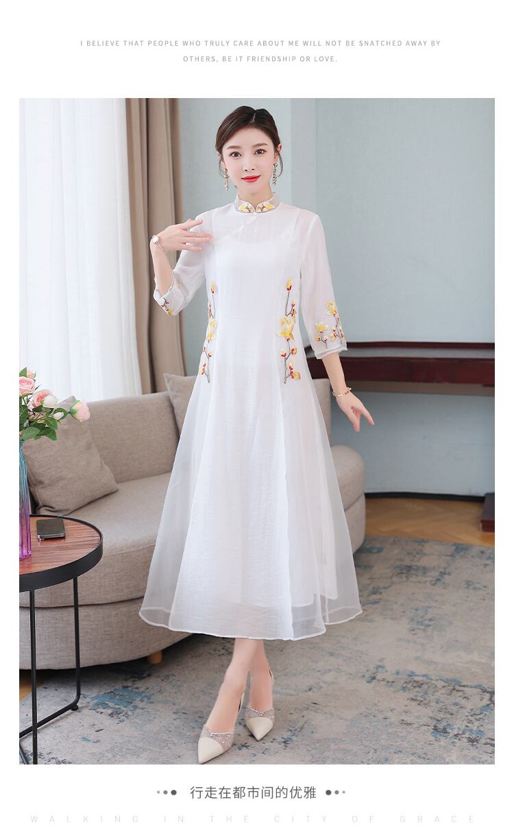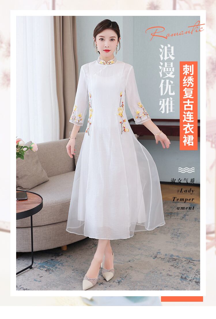 サマースタイルスタンダードカラースリムドレス レッド レトロ 刺繍 大きめサイズ 夏物 muto15914438427