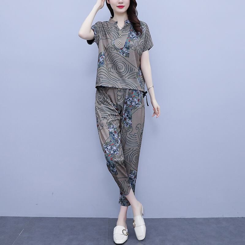 スタンダードカジュアルサマールーズ薄手カラー レトロ 大きめサイズ 夏物 muto86392097141