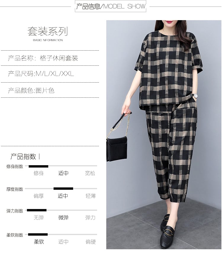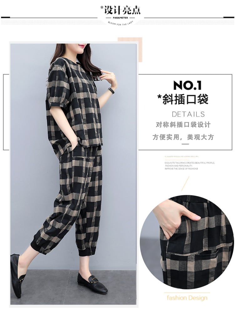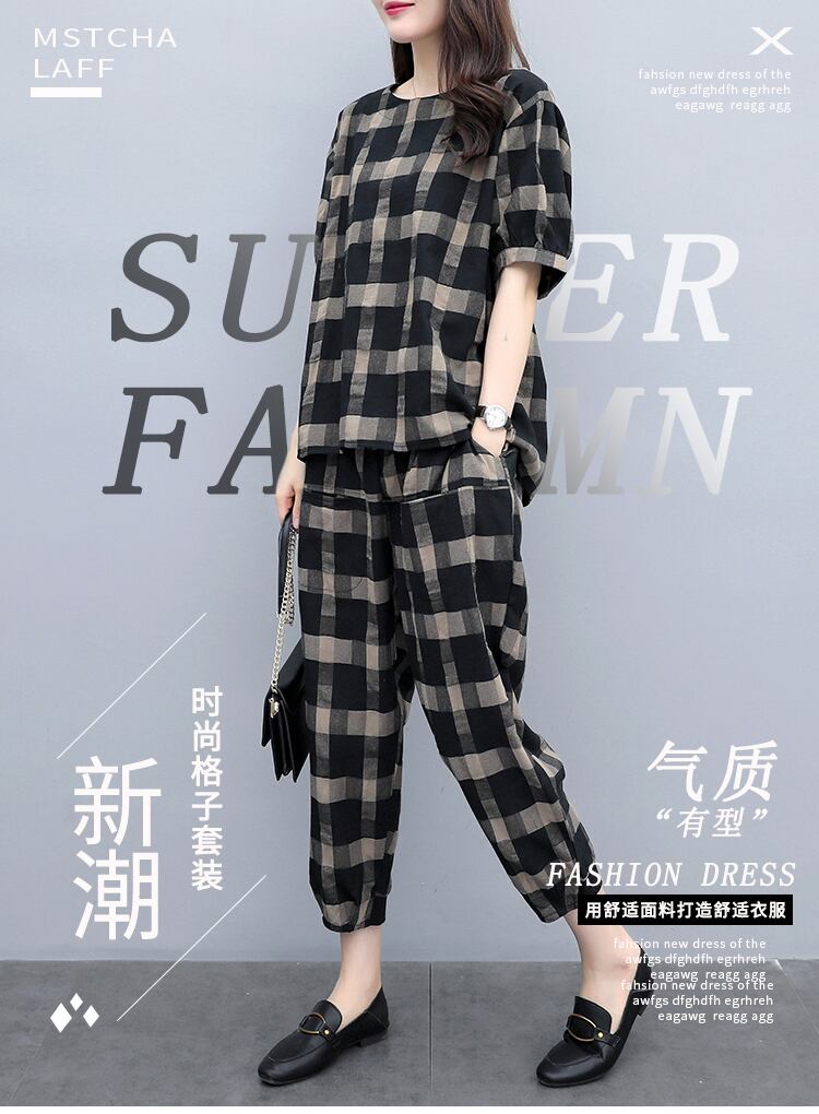 格子柄サマーカジュアルパンツ スリムセット コットン 大きめサイズ 夏物 muto65030976092