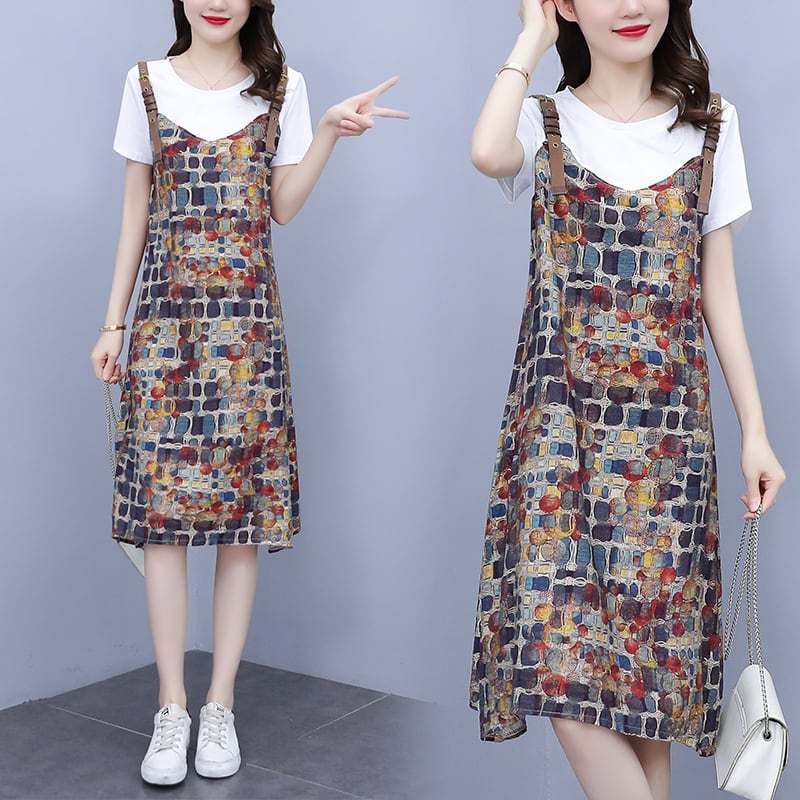 フローラルスカート ドレス サマースリム薄手 大きめサイズ 夏物 花柄 muto78362026217