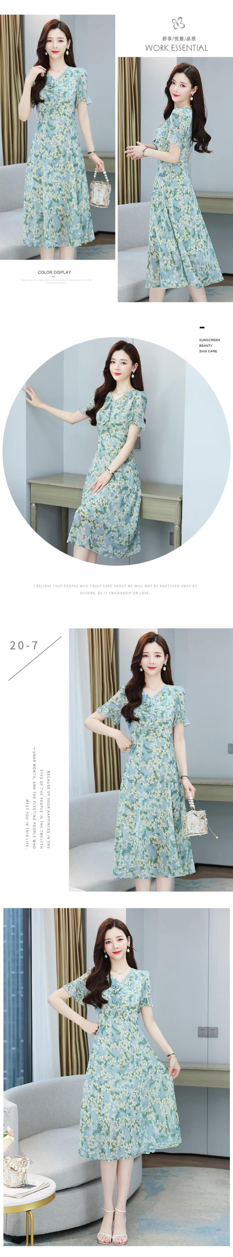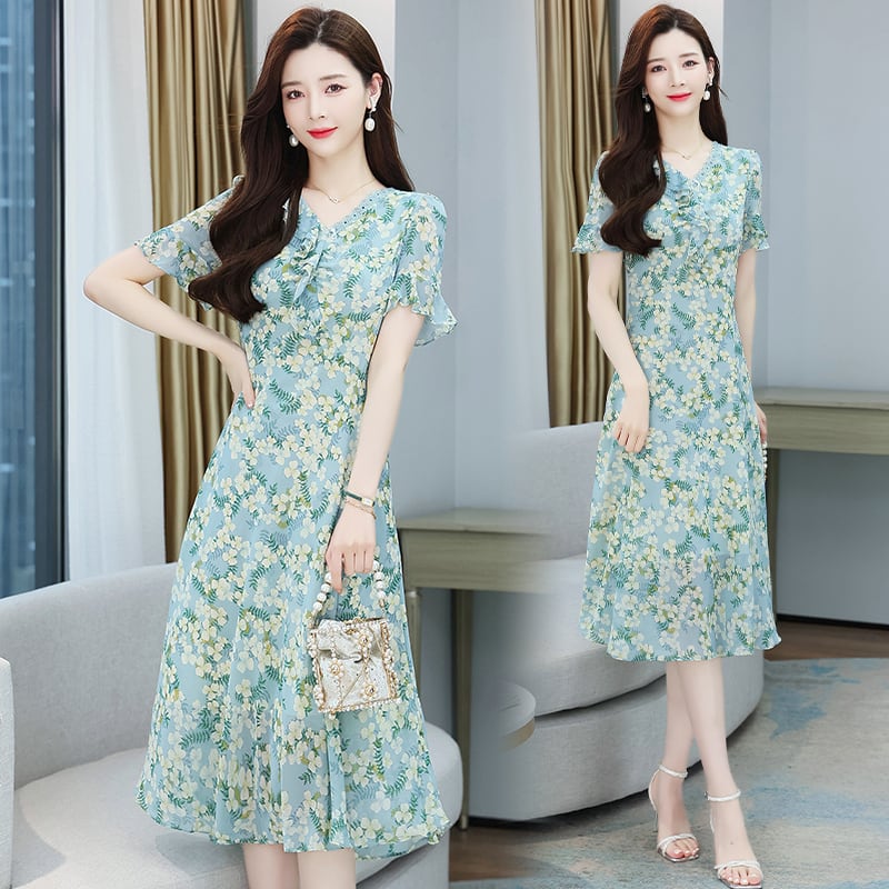 フローラルシフォンスカート サマースリムドレス 大きめサイズ 夏物 花柄 muto89287709947