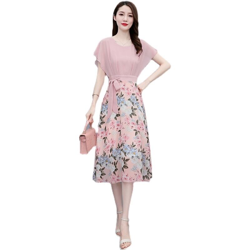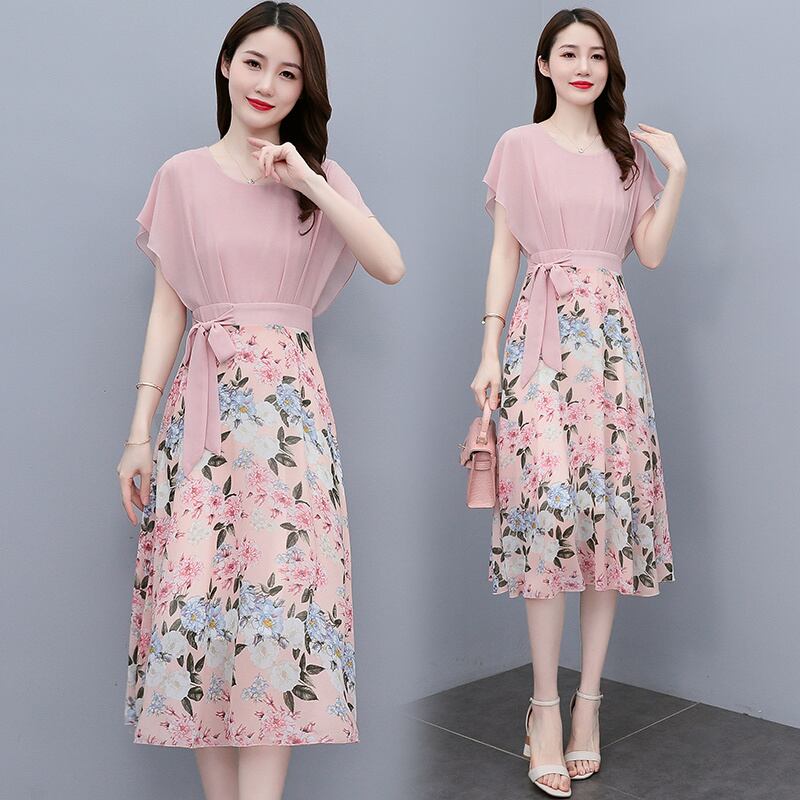 フローラルドレス サマーウェスト薄手シフォンスカート 大きめサイズ 夏物 花柄 muto14502290014