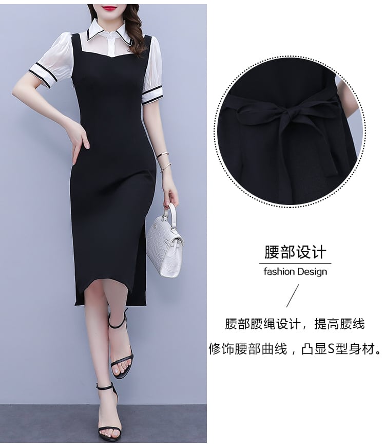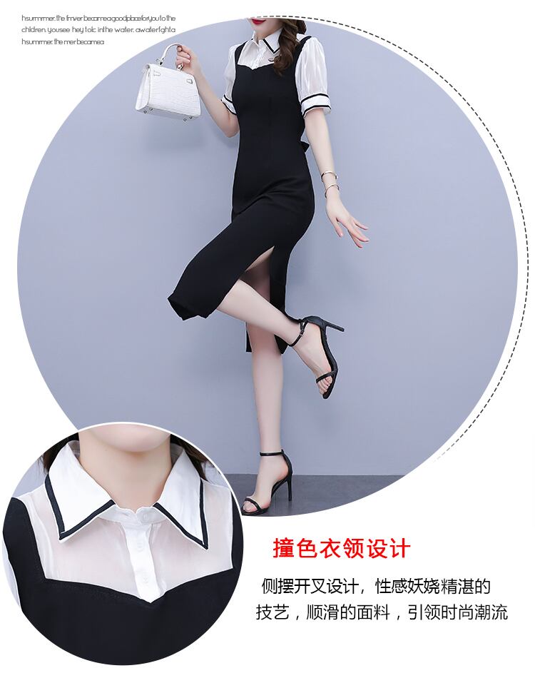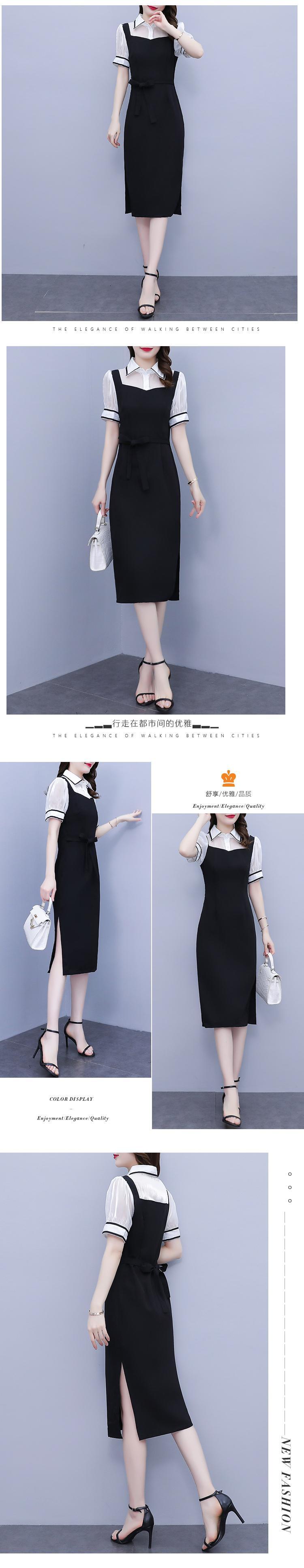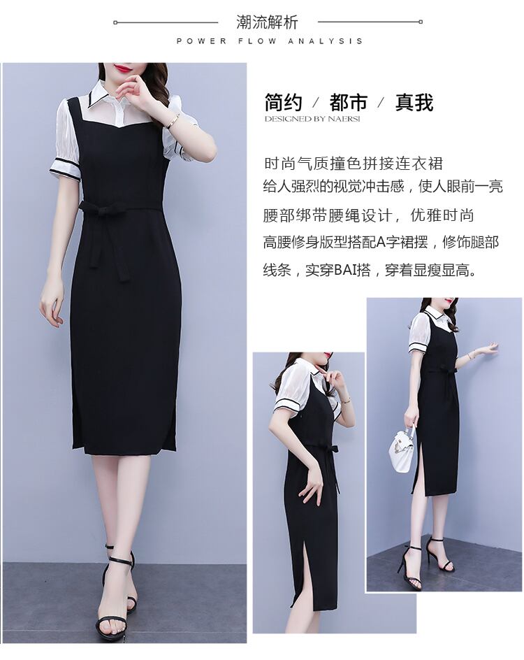 サマードレス スリムシャツ ロングスカート 半袖スリーブウェスト ショート ハーフスリーブ 大きめサイズ 夏物 muto94715391651