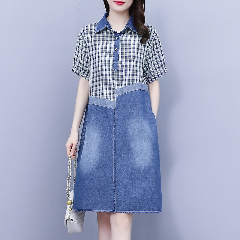ドレス ルーズサマーカジュアルシャツ スカート 大きめサイズ 夏物 ステッチ muto22019959992