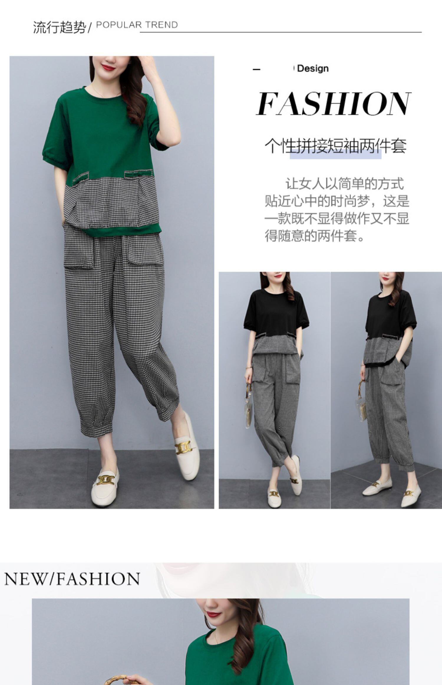 カジュアルサマー薄手パンツ セット コットン 大きめサイズ 夏物 ステッチ muto73255278458