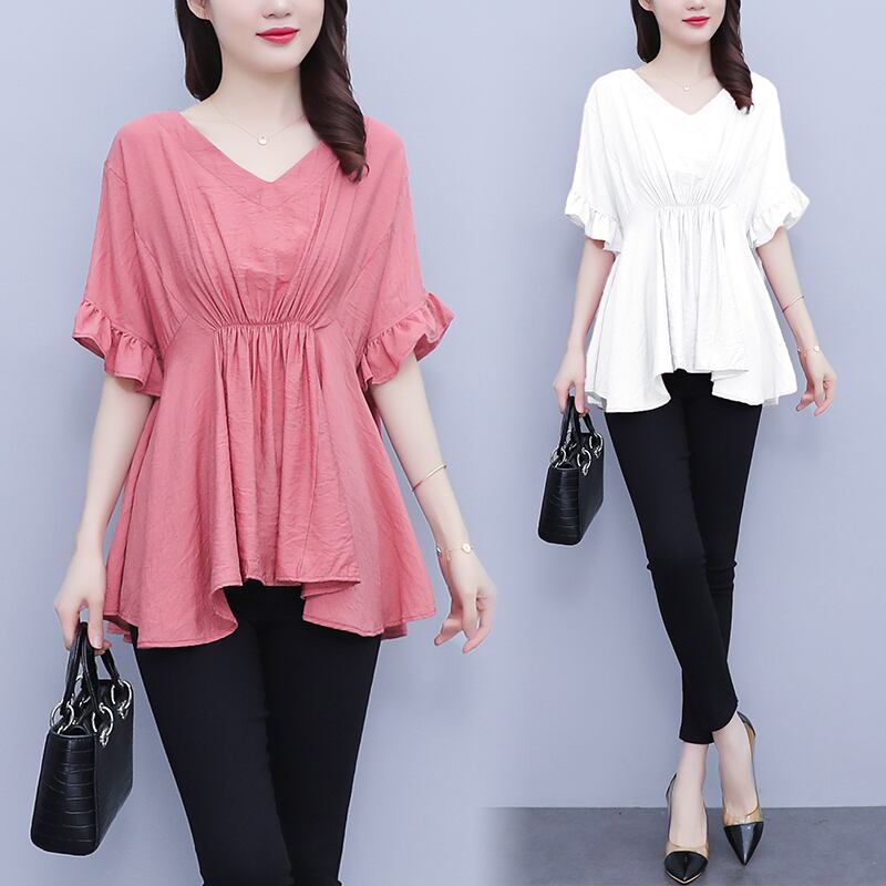 薄手トップス サマーウェストシフォンシャツ ルーズTシャツ 大きめサイズ 夏物 muto39807976565