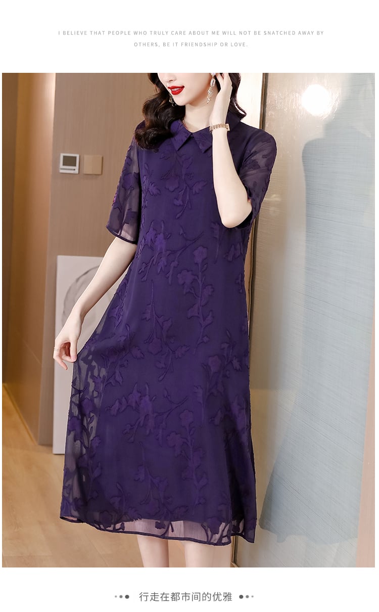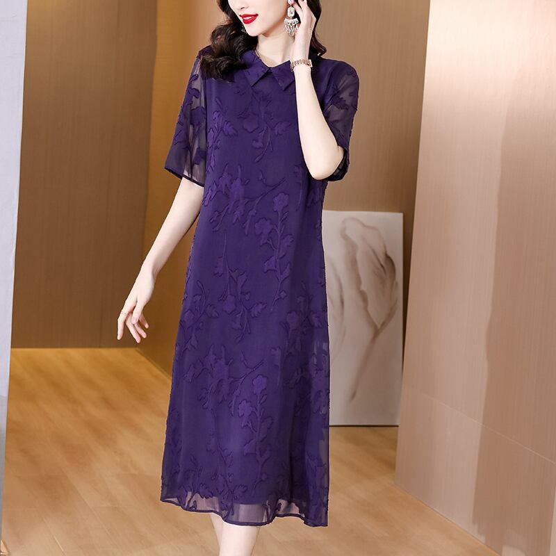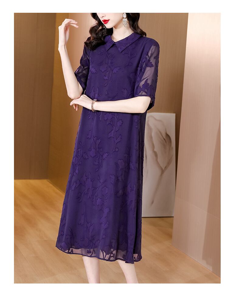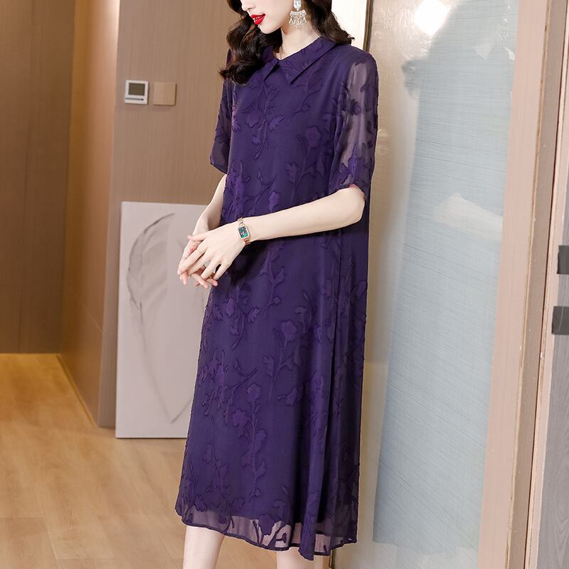 ジャカードドレス サマーロングスカート レッド 刺繍 大きめサイズ 夏物 パープル muto53215086504