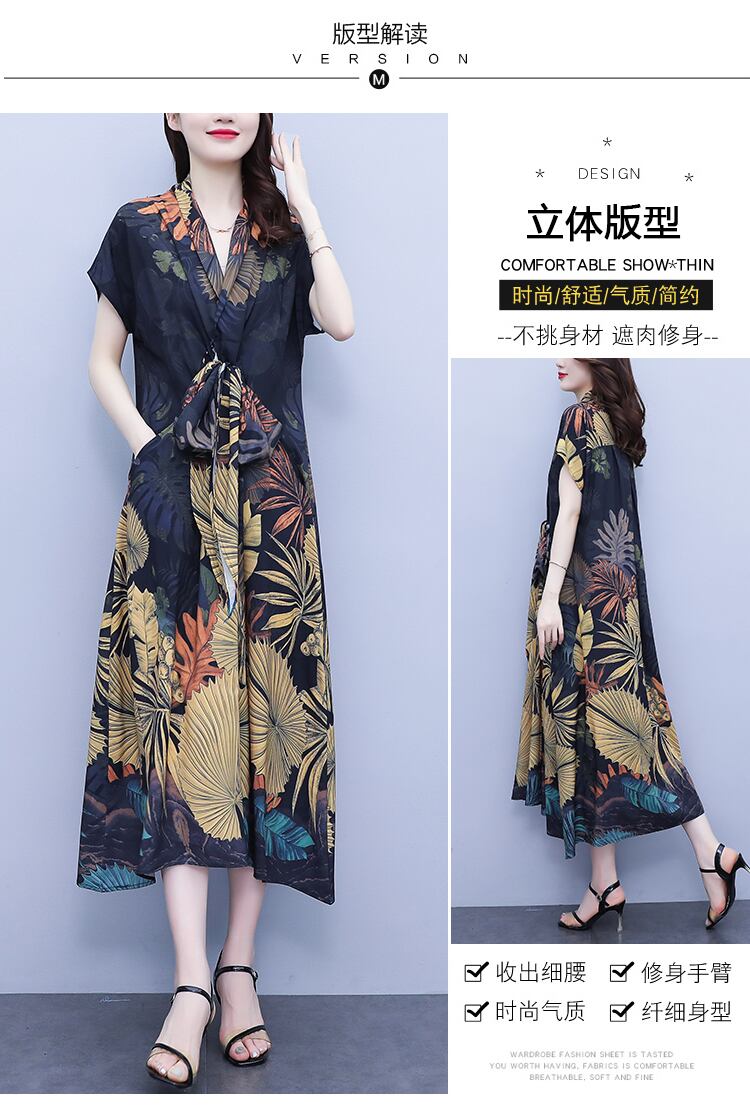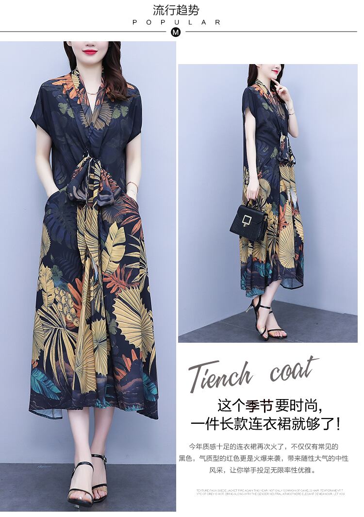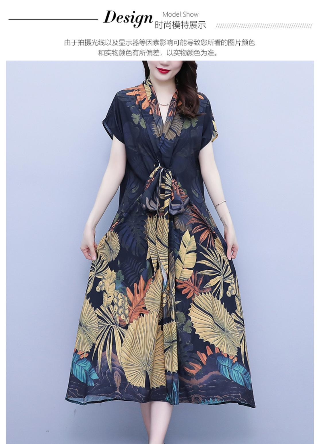 薄手ドレス サマースタンダードロングスカート レトロ 大きめサイズ 夏物 シルク muto81433495937