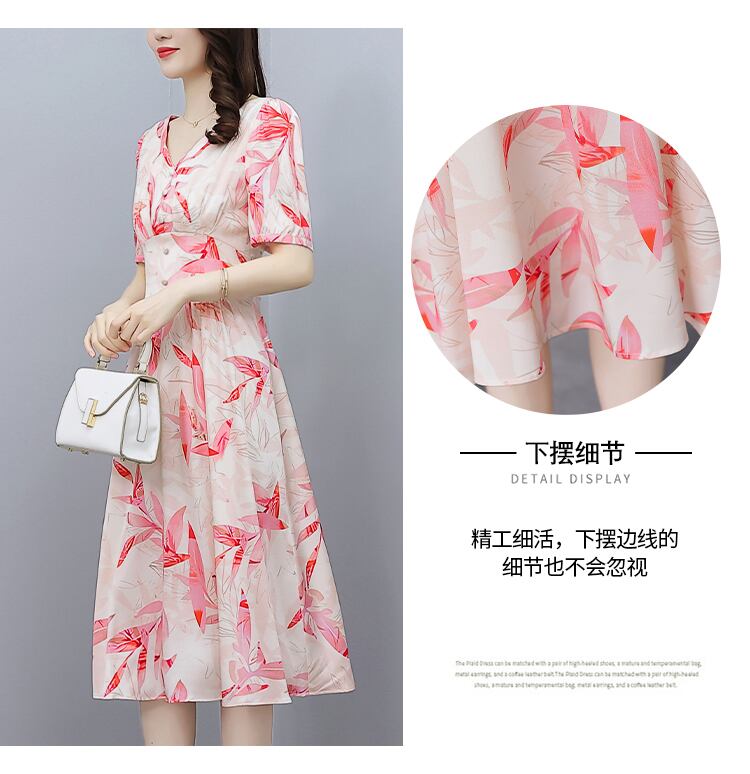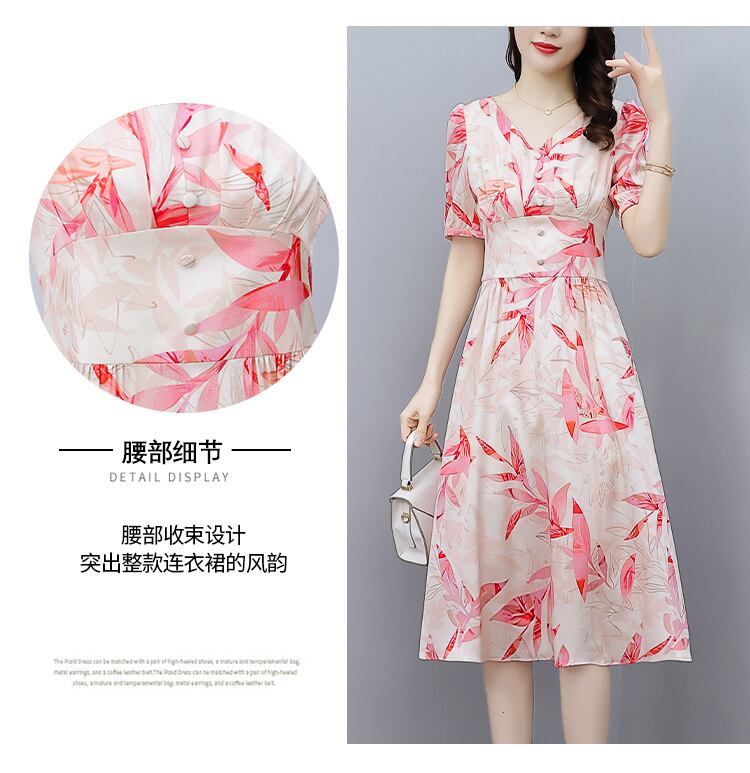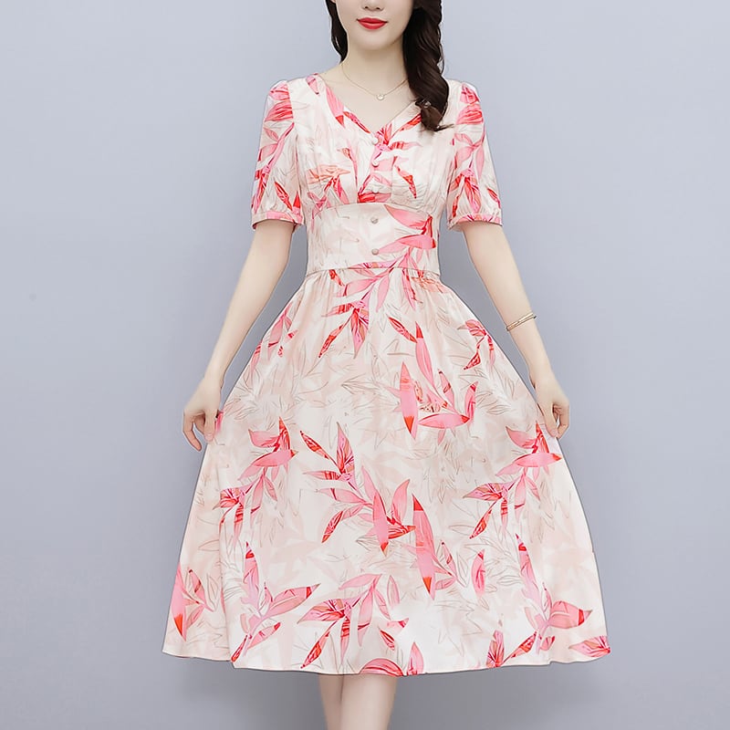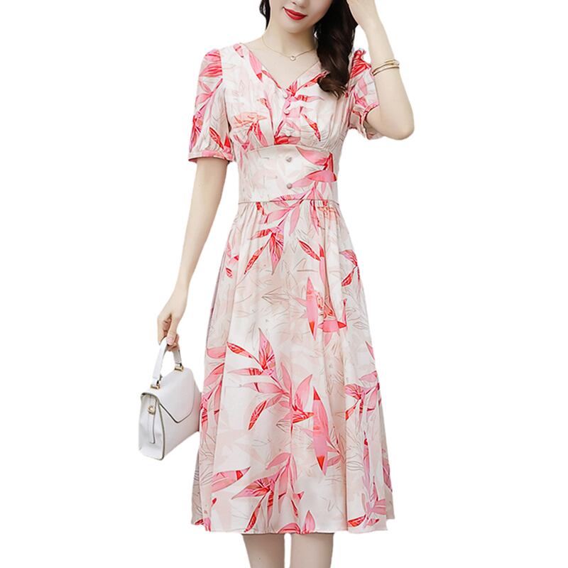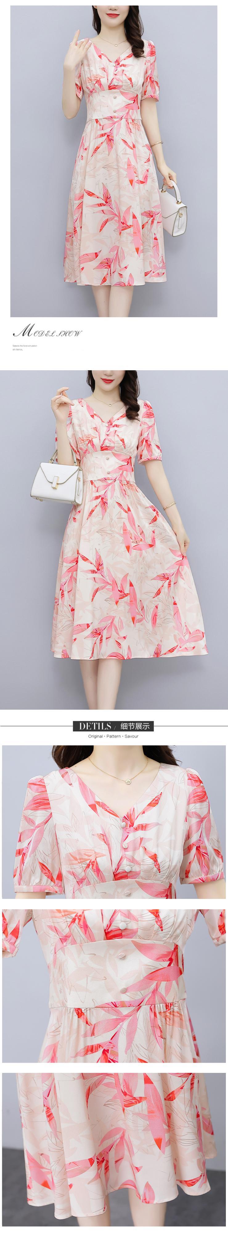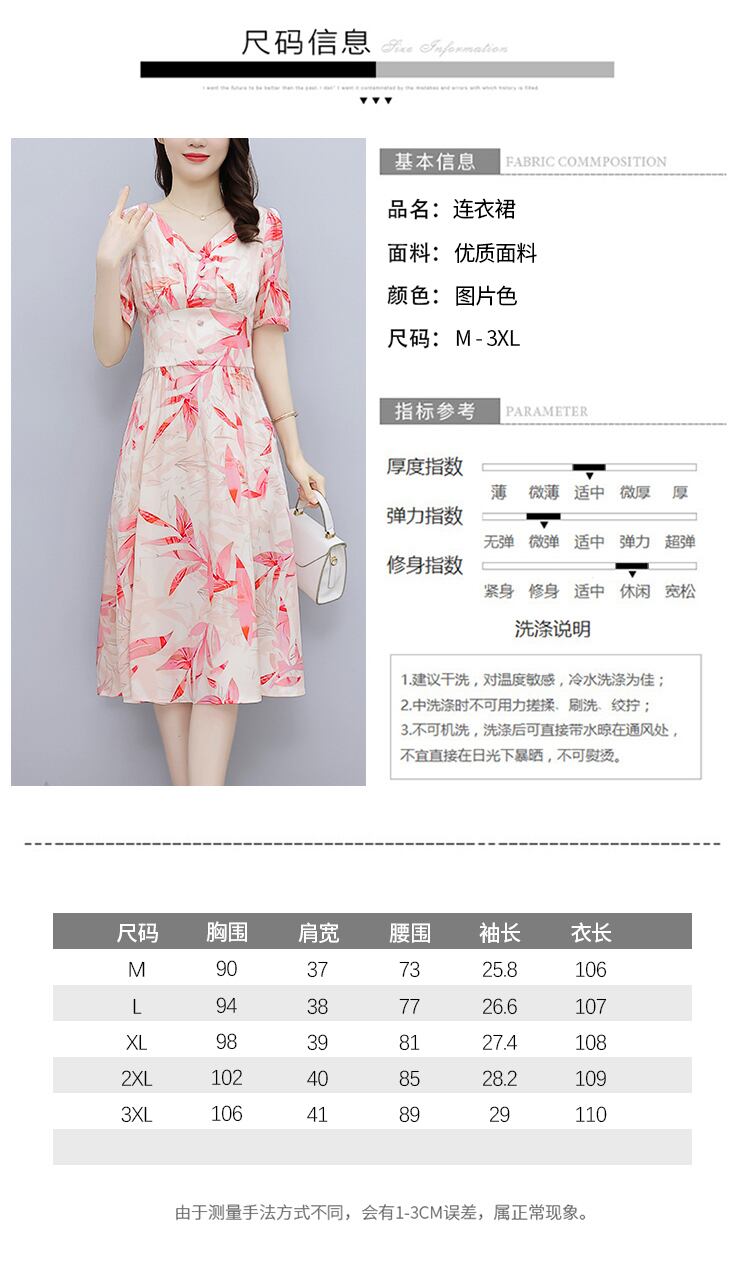 プリントVネックドレス サマースリムスカート 大きめサイズ 夏物 muto97583633195