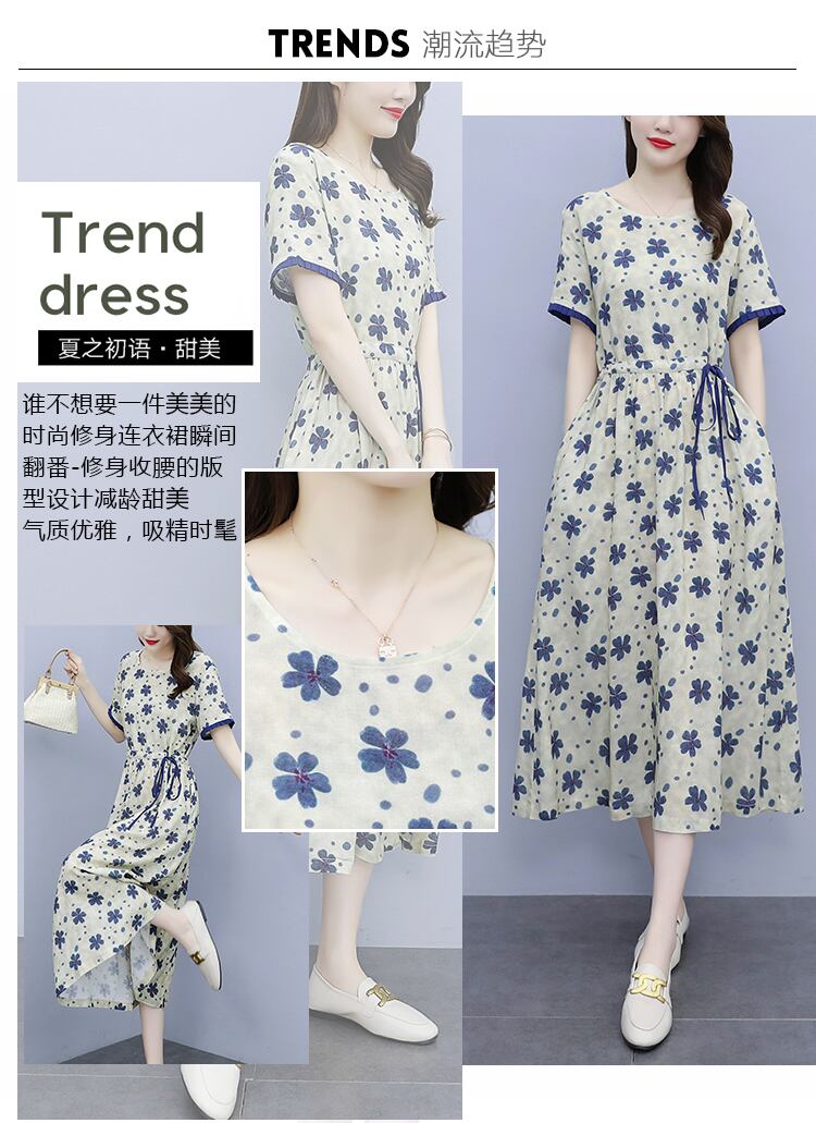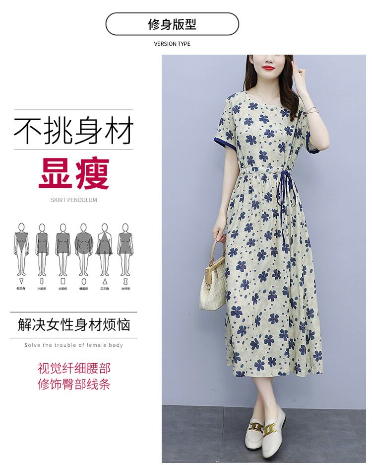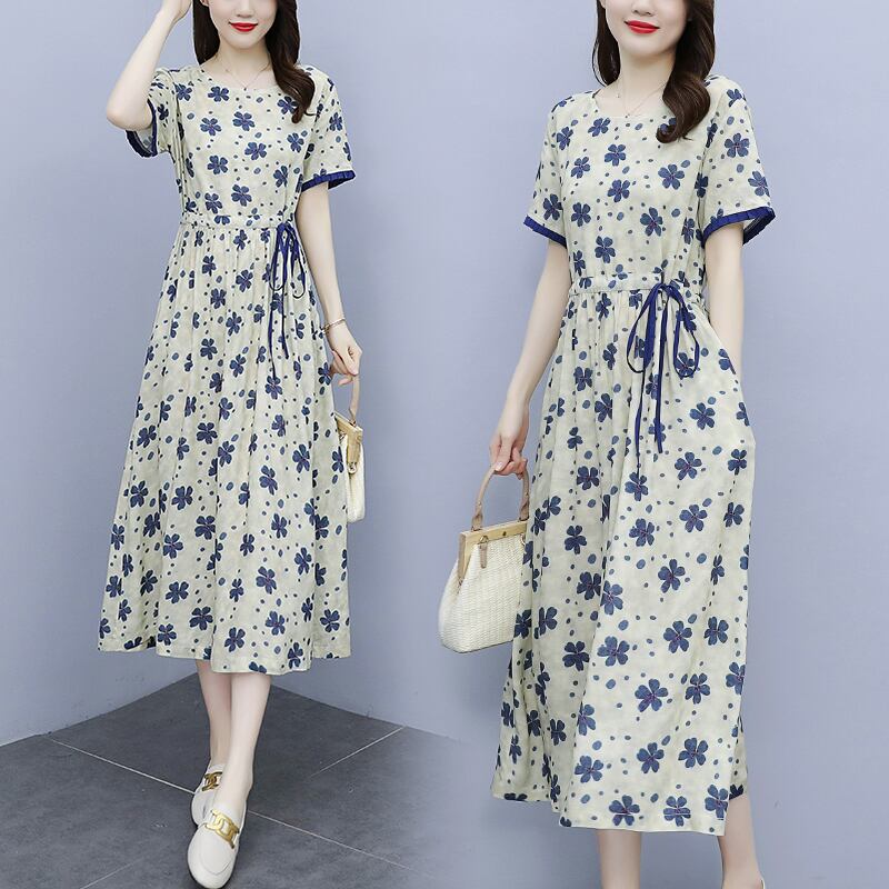 ドレス サマースタイルウェスト薄手フローラルスカート コットン 大きめサイズ 夏物 花柄 muto82445122847