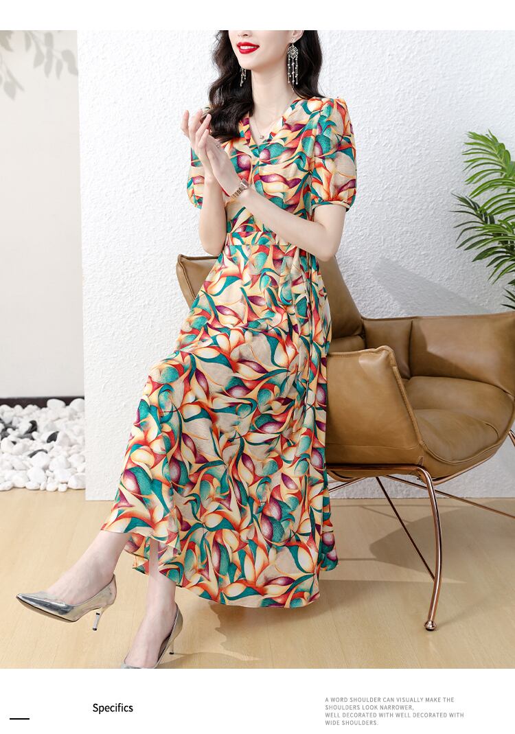 プリントシフォンドレス サマーVネックスリムスカート 大きめサイズ 夏物 muto1920770823