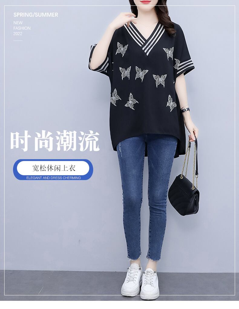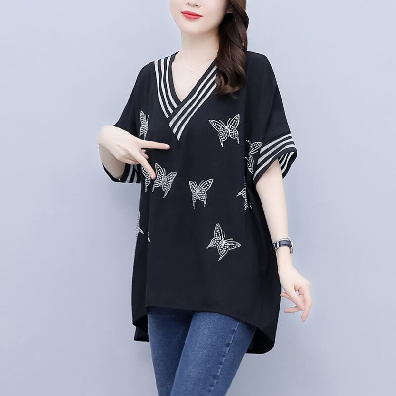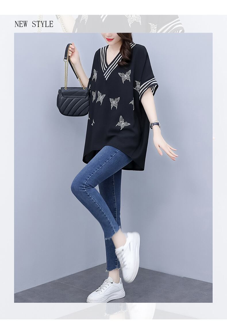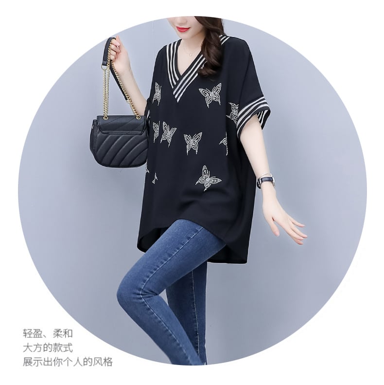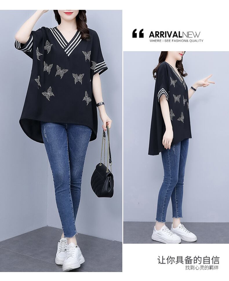 シフォンシャツ サマーVネックTシャツ ルーズ薄手 大きめサイズ 夏物 muto34736586204