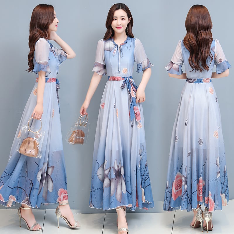 シフォンドレス サマー薄手アンクルロングスカート 大きめサイズ 夏物 muto76373648363