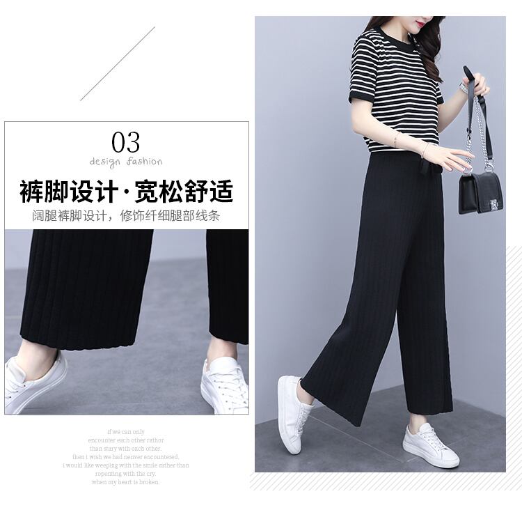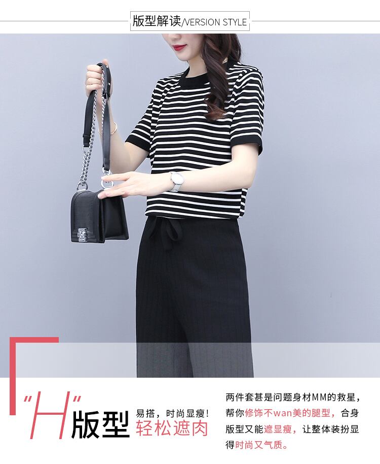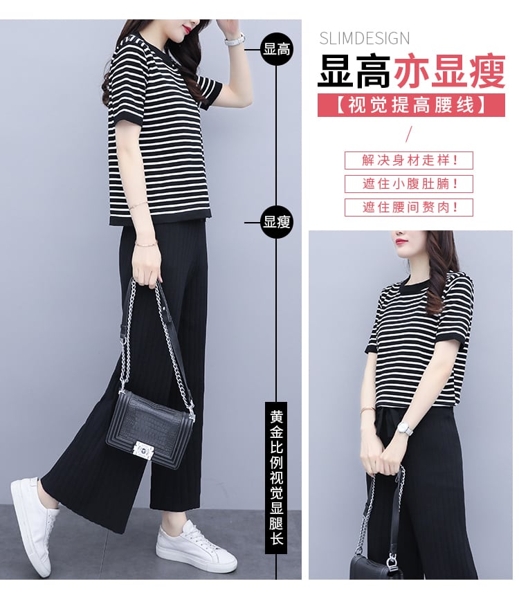 ストライプサマー薄手パンツ セット 大きめサイズ 夏物 シルク muto41228199025