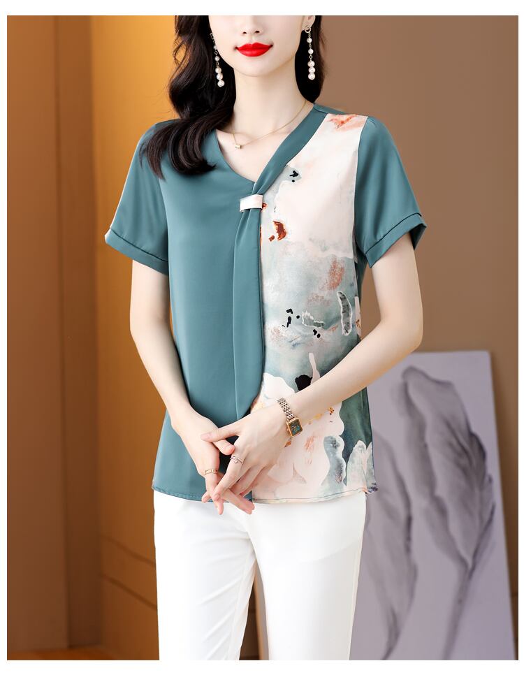 シフォンシャツ サマープリントスタイル薄手トップス 大きめサイズ 夏物 ステッチ muto7798512617