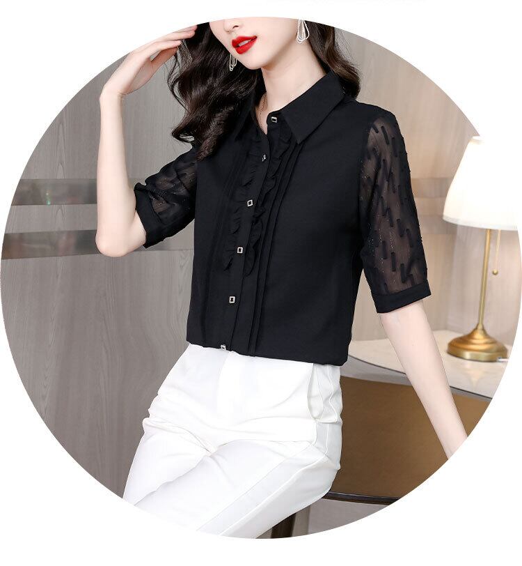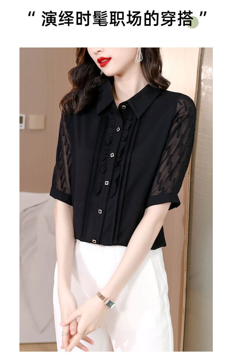 ブラックショートシャツ サマー薄手シフォントップス ルーズ 大きめサイズ 夏物 muto66603868273
