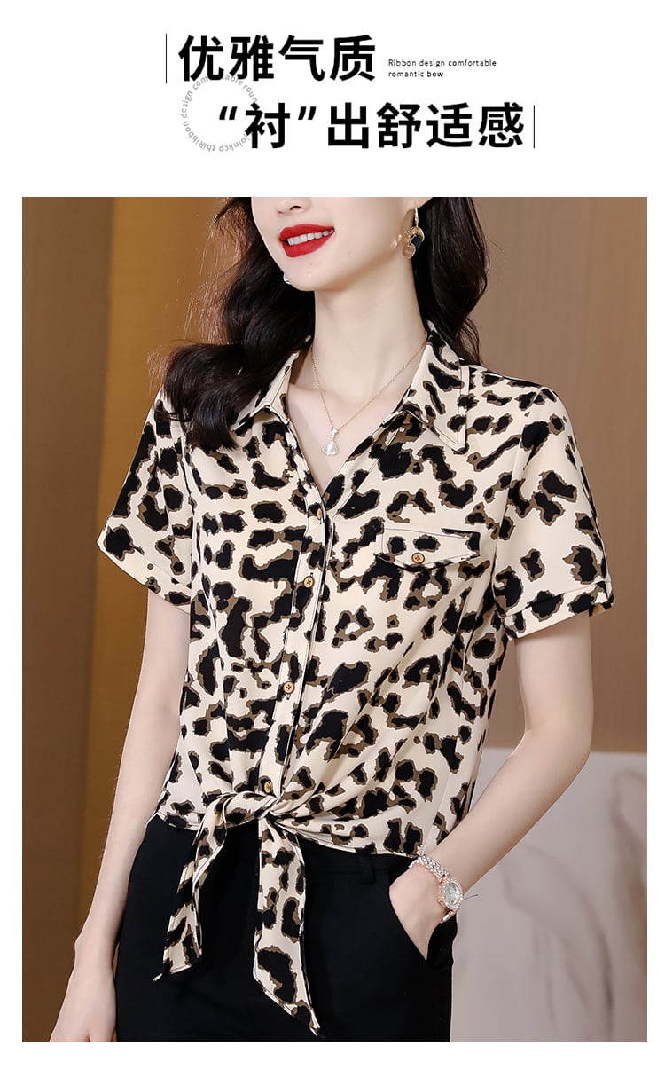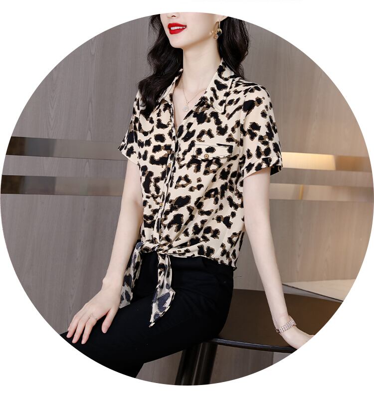 レオパードプリント柄シャツ サマースタイルシフォントップス レディース 大きめサイズ 夏物 muto35799175279