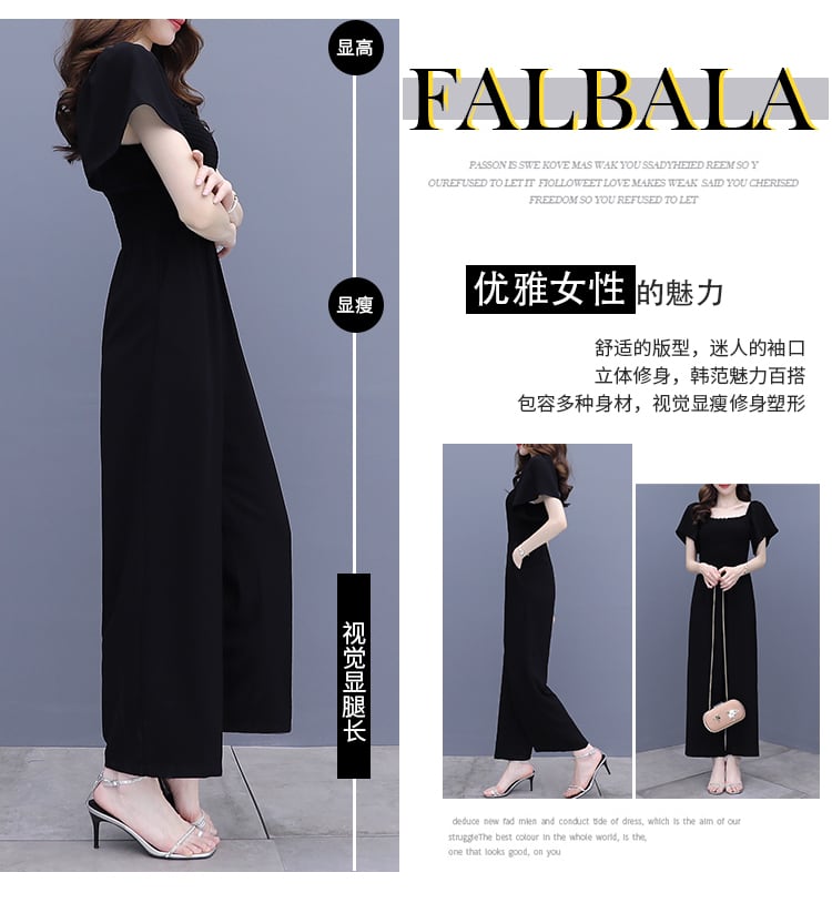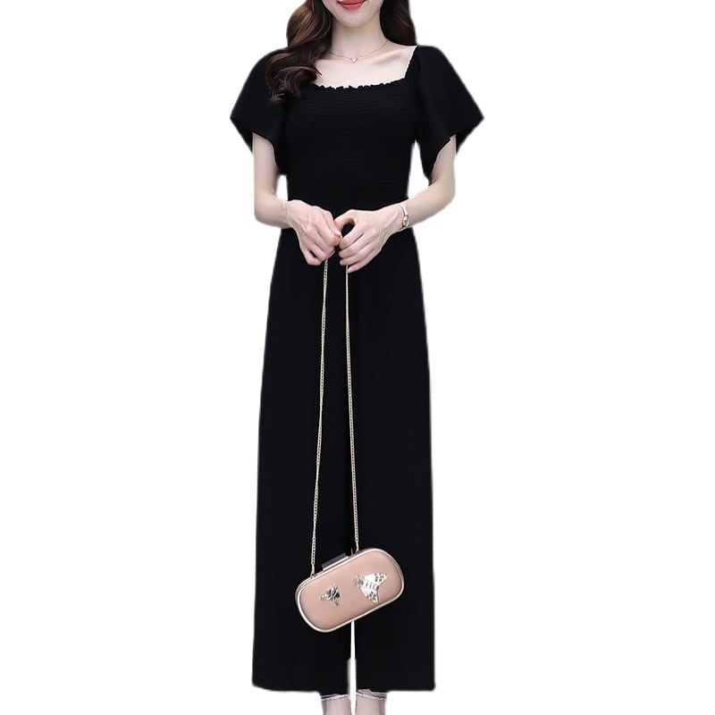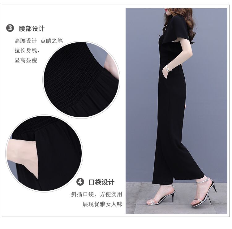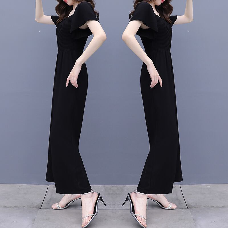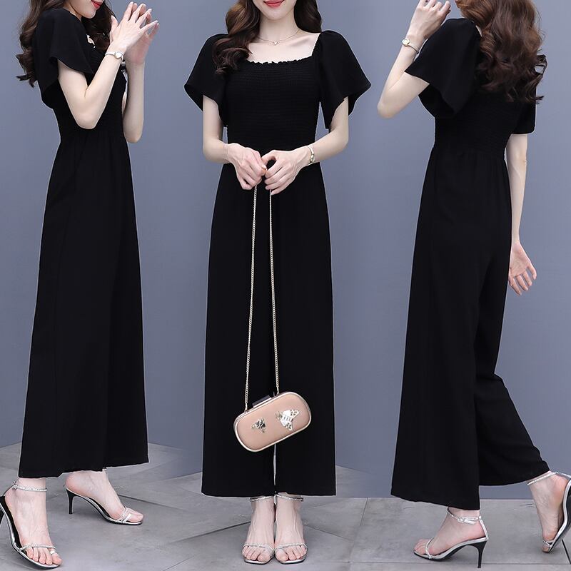 ブラックジャンプスーツ オールインワン サマー薄手 大きめサイズ 夏物 muto19815333945