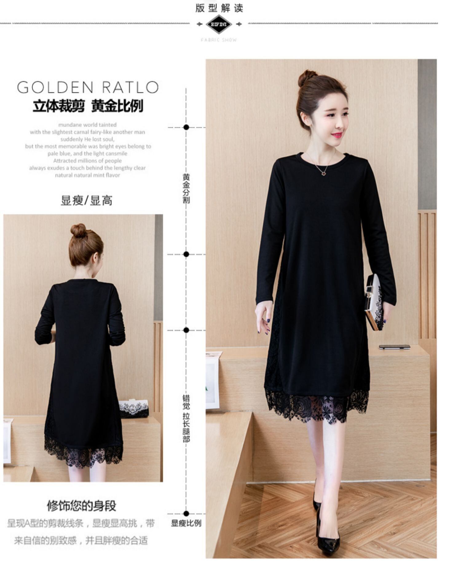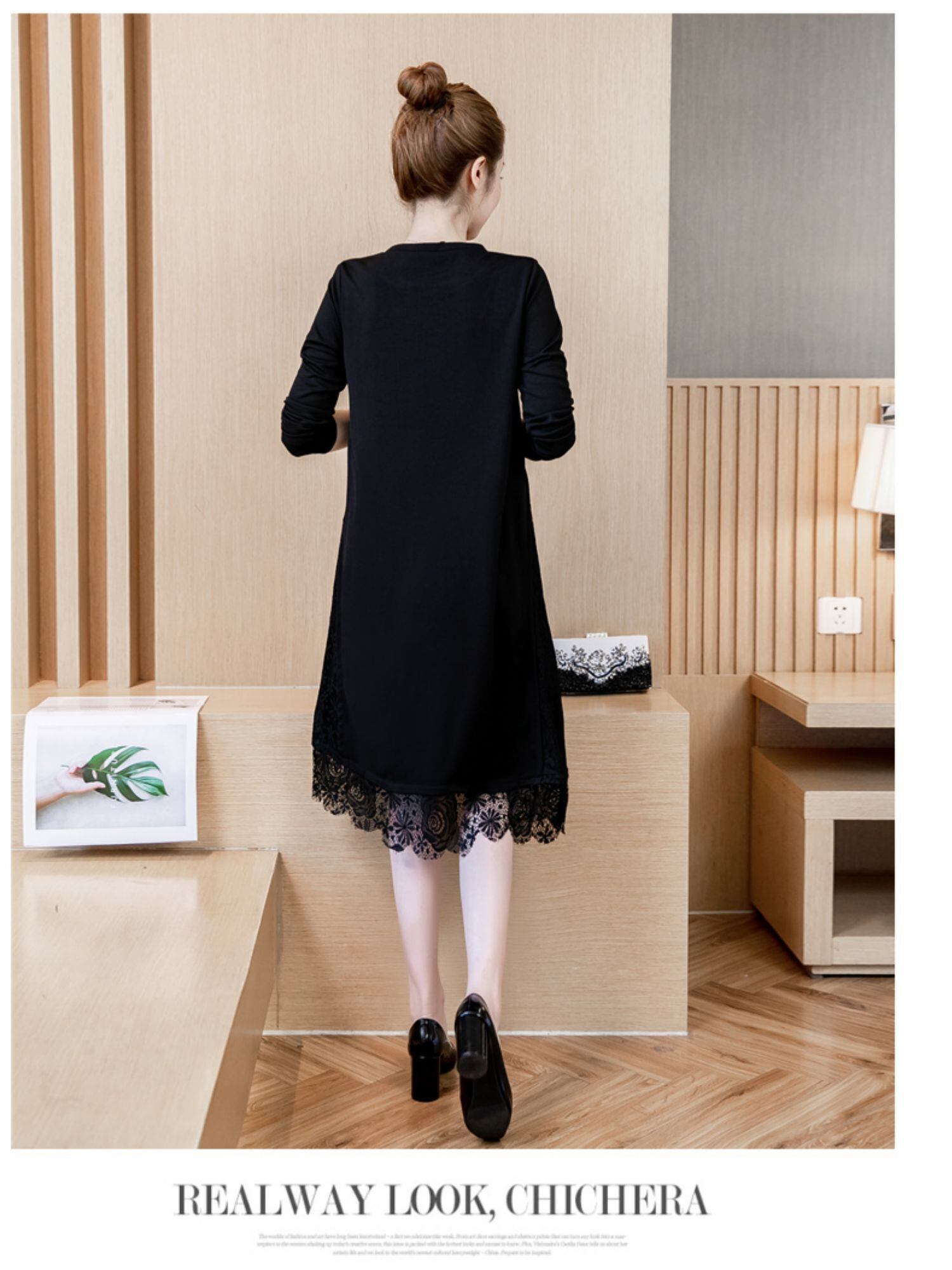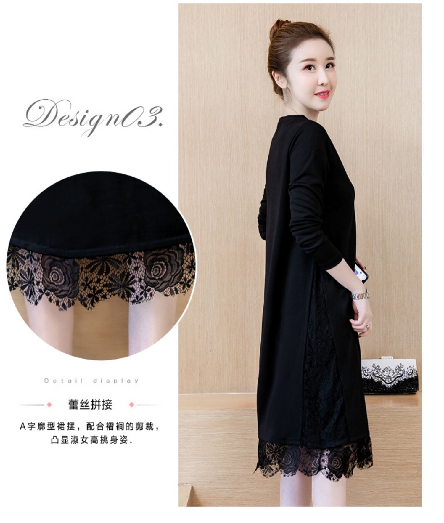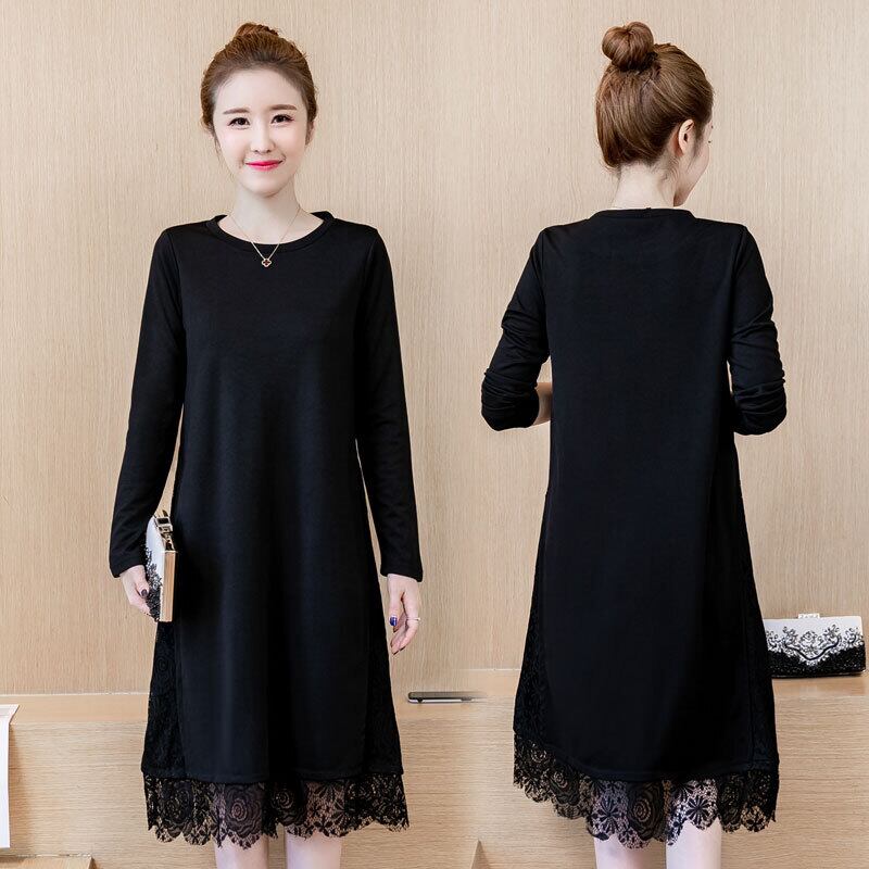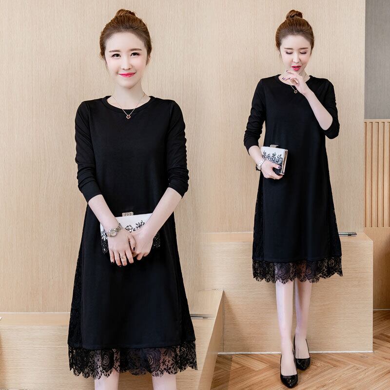 スプリングオータムニットドレス レース 大きめサイズ 春物 秋物 ステッチ muto6882926134