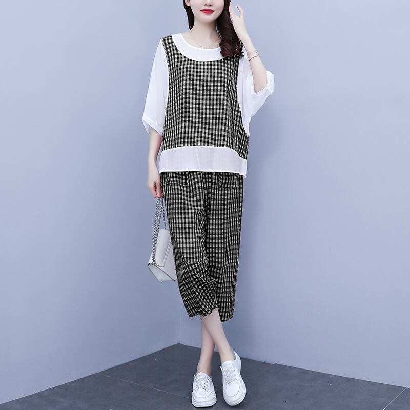格子柄カジュアルサマールーズ薄手 大きめサイズ 夏物 ステッチ muto28835867983