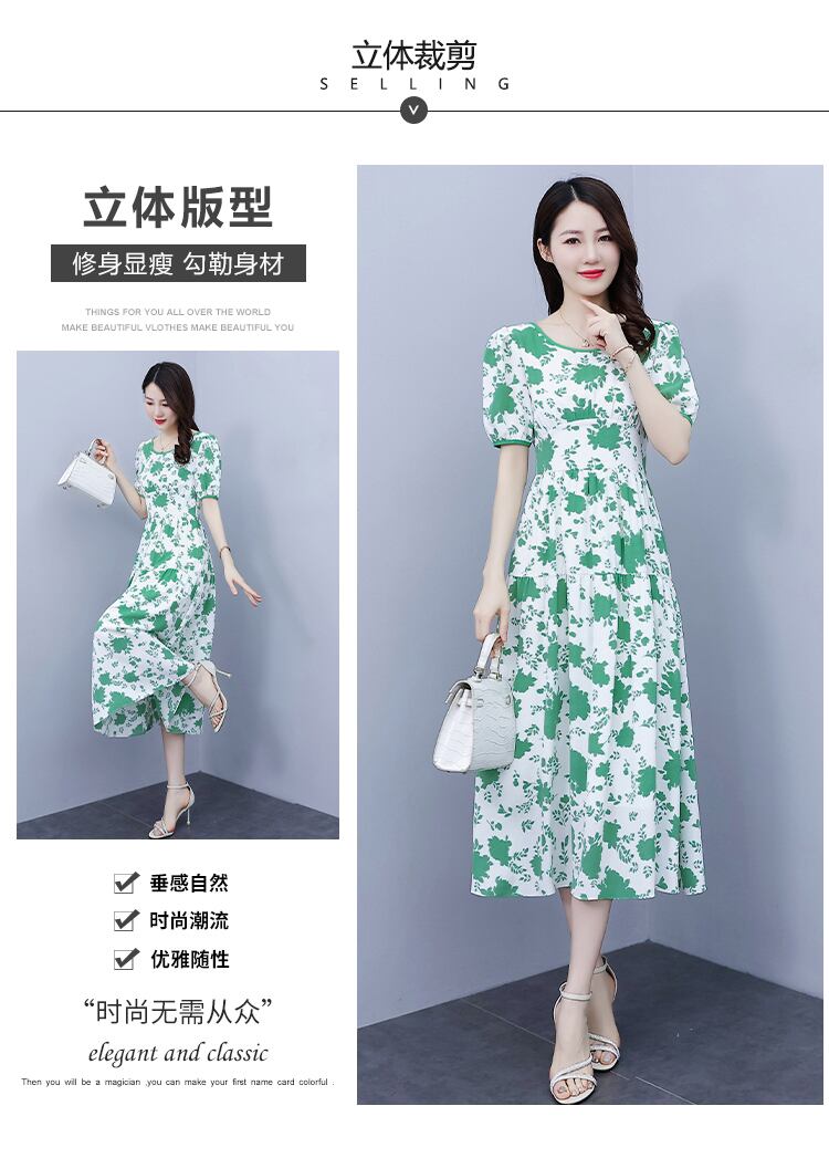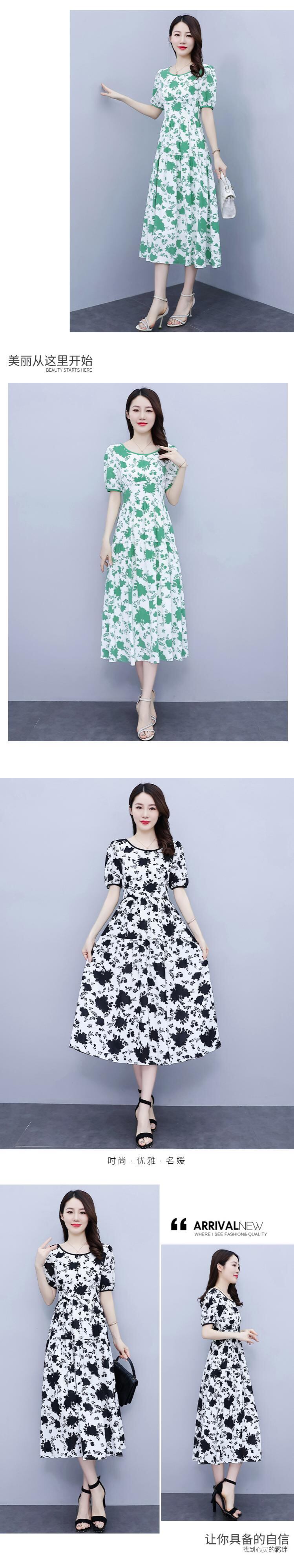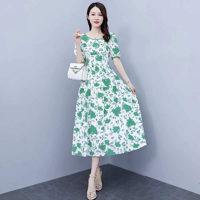 スタンダード薄手プリントシフォンドレス サマースカート レトロ 大きめサイズ 夏物 muto17101174655