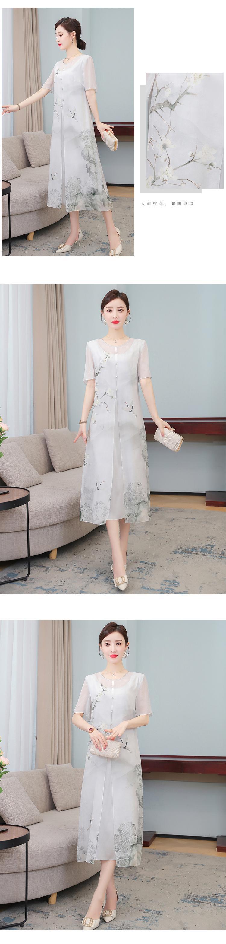 スタンダードプリントドレス サマースタイルウェストスリムスカート レトロ 大きめサイズ 夏物 muto88655997717