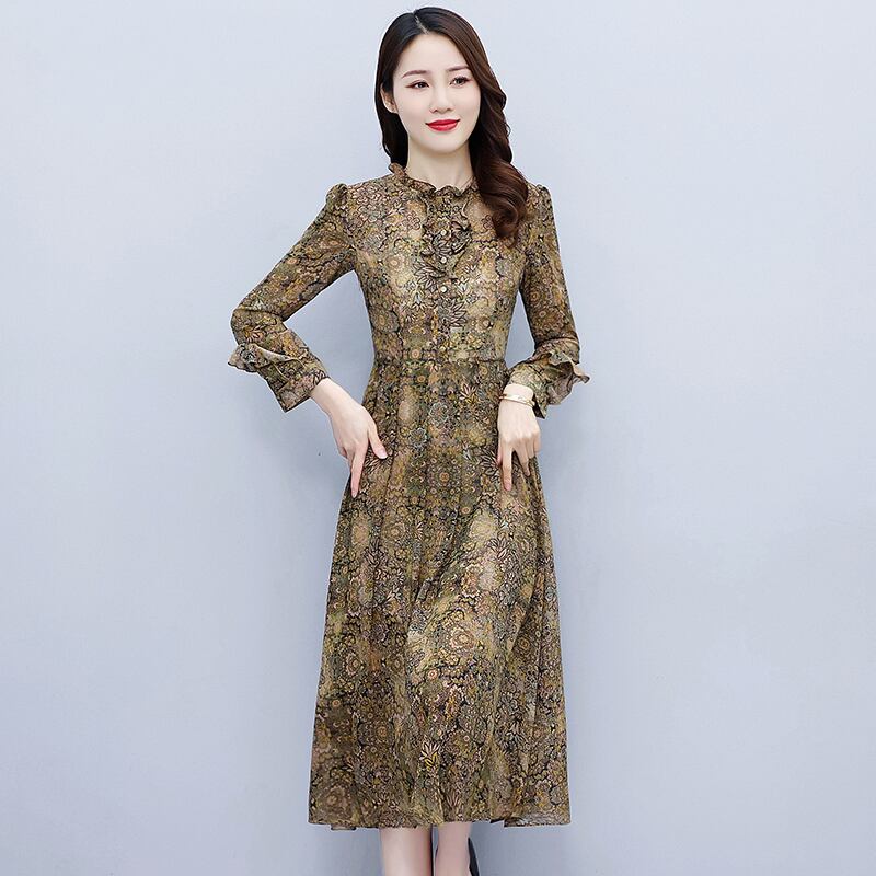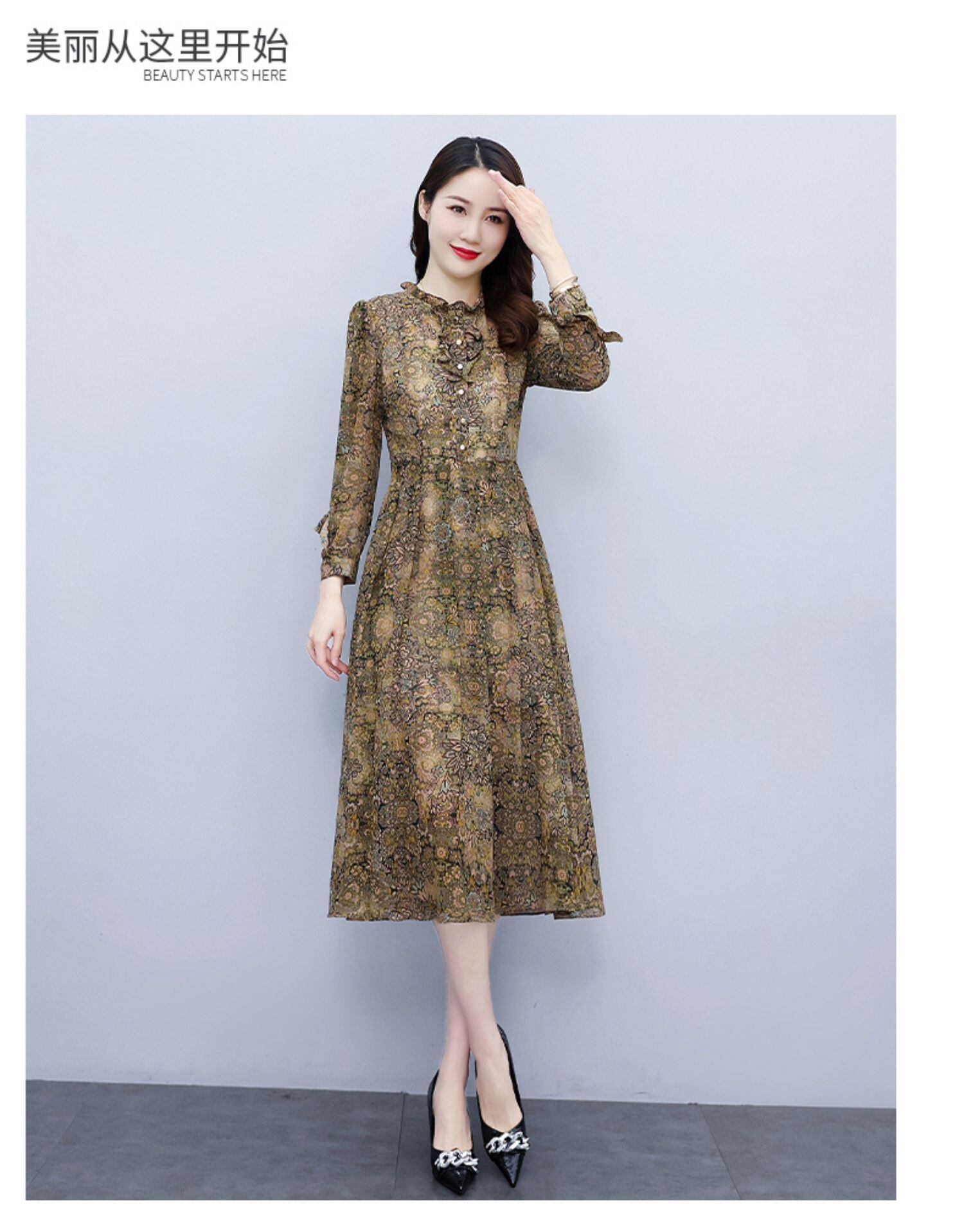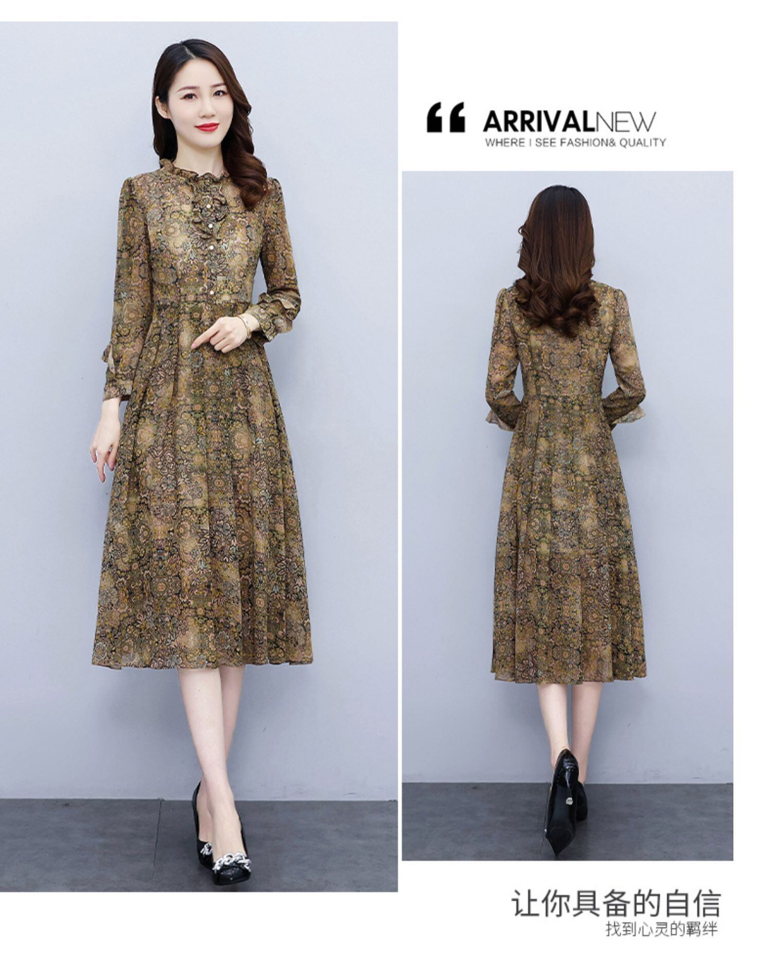 フローラルシフォンドレス スプリングカラー薄手Aラインスカート 大きめサイズ 春物 花柄 muto68584788898