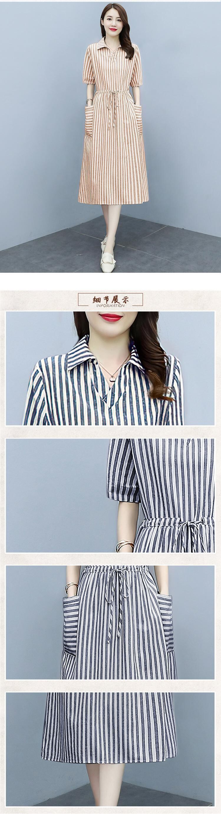 ドレス サマー薄手ストライプシャツ スカート コットン 大きめサイズ 夏物 muto38661437623