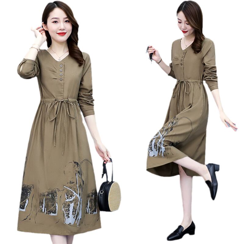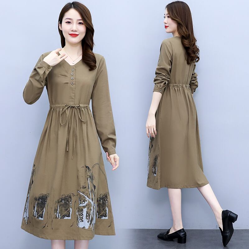 スプリングドレス 薄手ウェストルーズスカート ロング 大きめサイズ 春物 muto81938620740