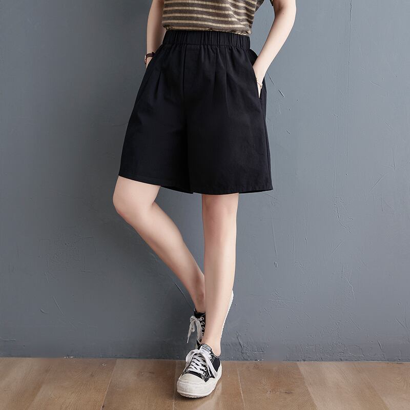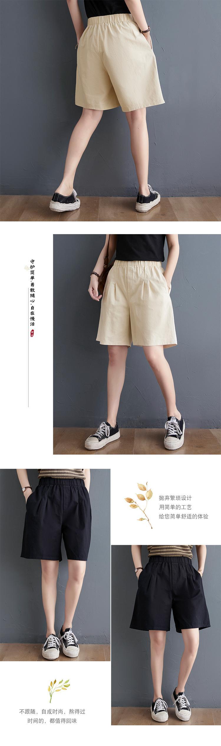 カジュアルショーツ サマールーズ薄手ソリッド カラープリーツストレッチウェストパンツ コットン エラスティック 伸縮 大きめサイズ 夏物 ブルマー ソリッドカラー muto14099276556