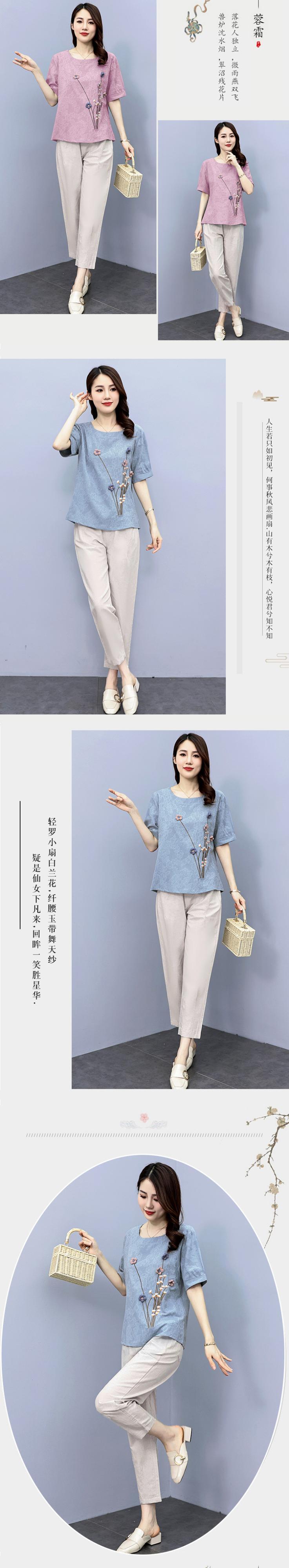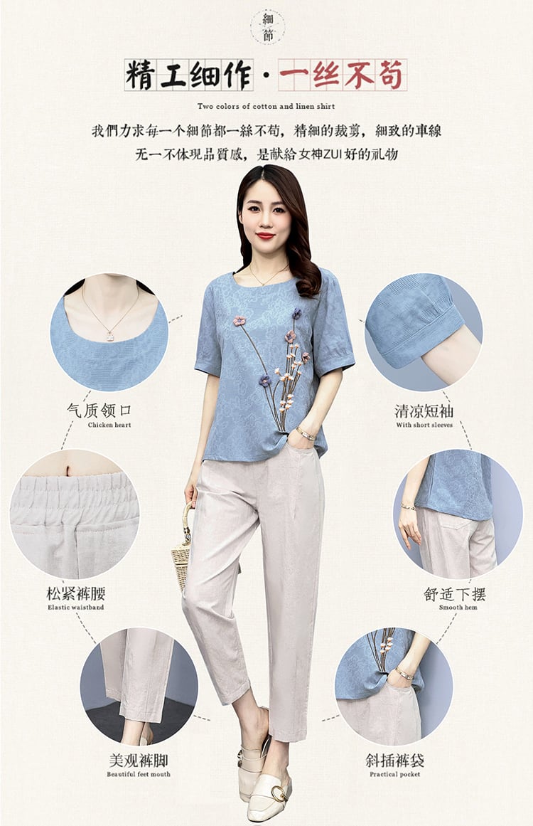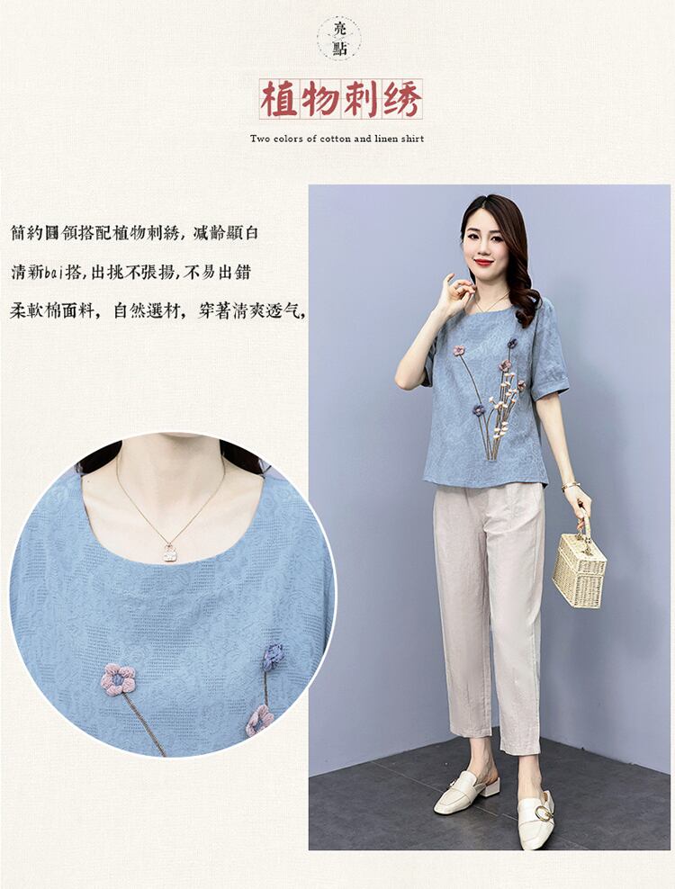 薄手サマールーズトップス セット レッド コットン 刺繍 大きめサイズ 夏物 muto79193684025