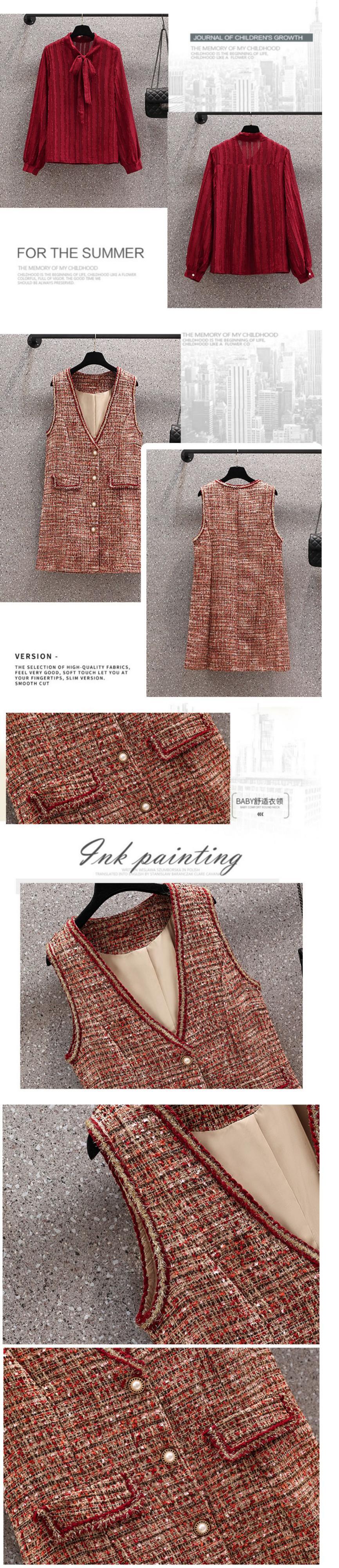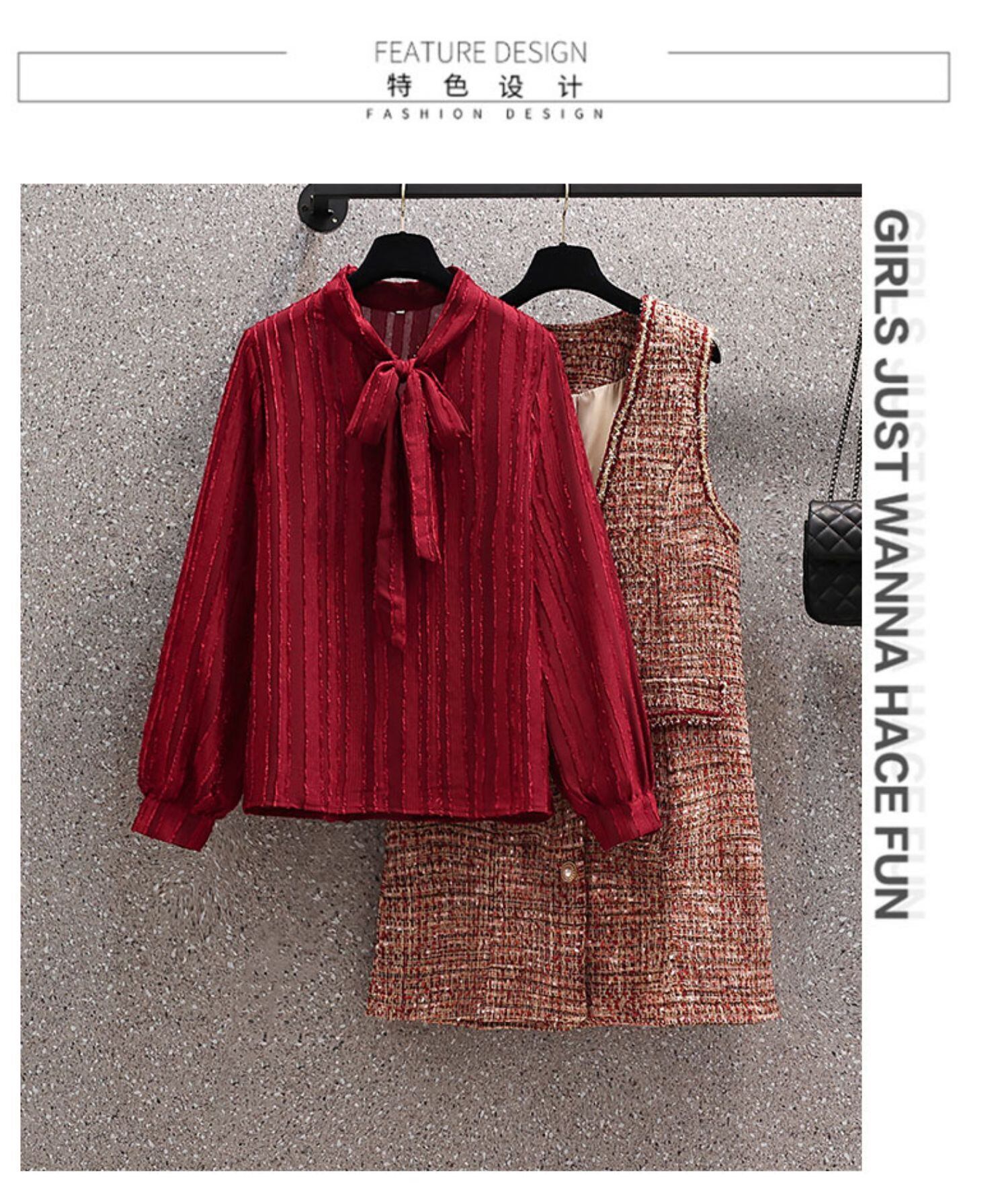 スプリングドレス 薄手レッドシャツ スカート セット 大きめサイズ 春物 muto49005328436