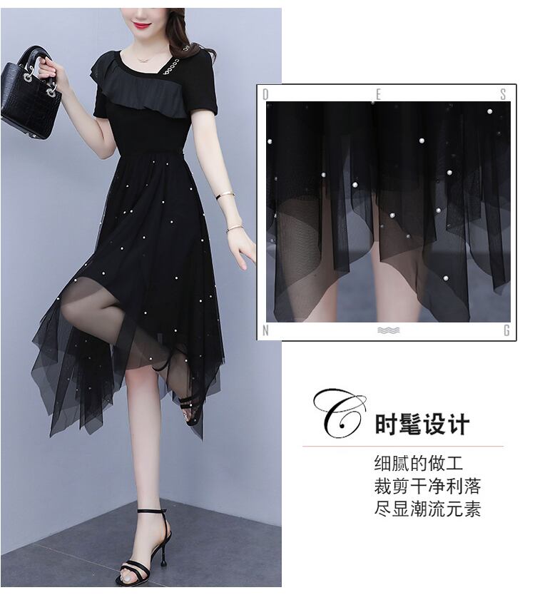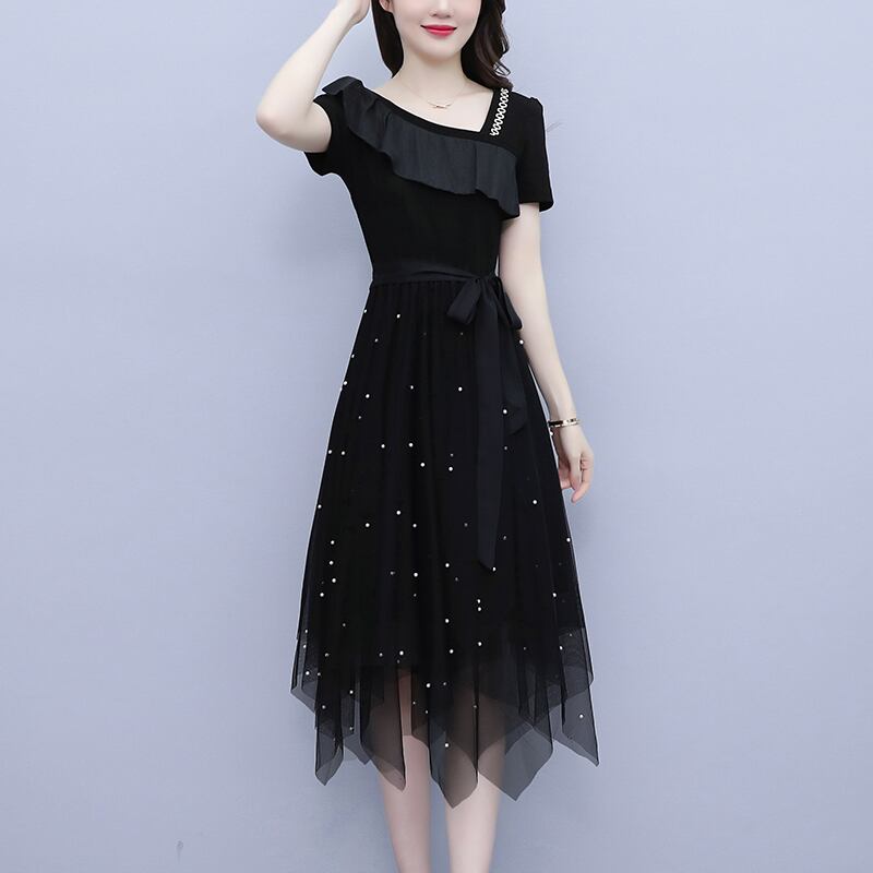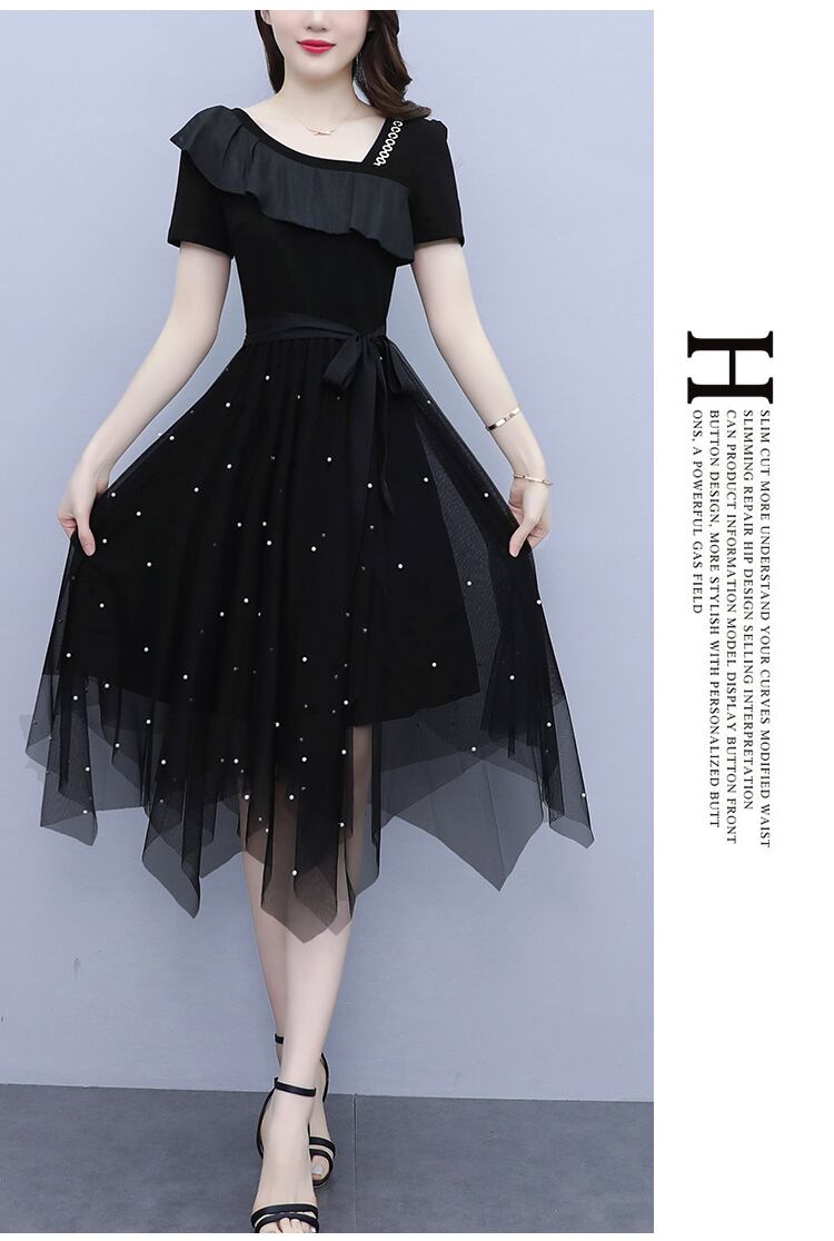 メッシュドレス サマースリムフィット薄手Aラインスカート 大きめサイズ 夏物 muto30770107419