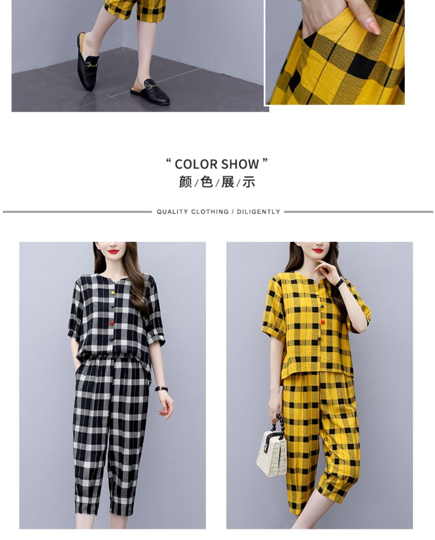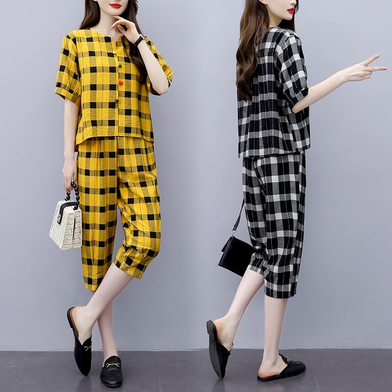 格子柄カジュアルサマードレス 薄手パンツ 大きめサイズ 夏物 muto59399709051