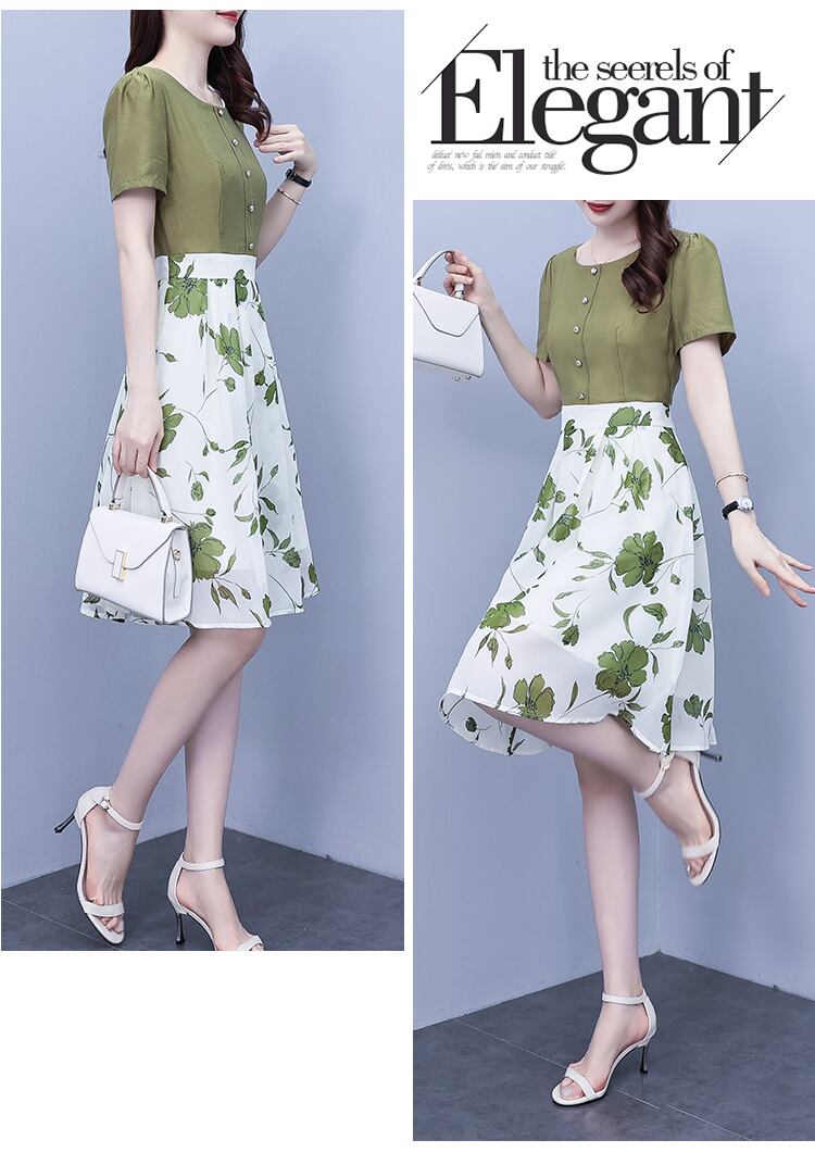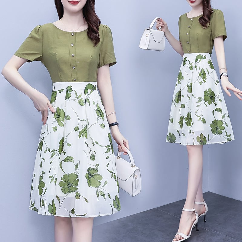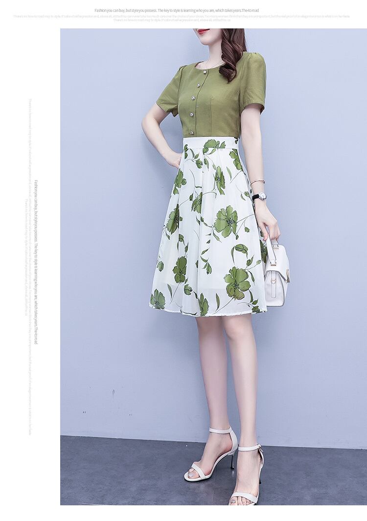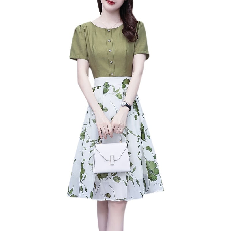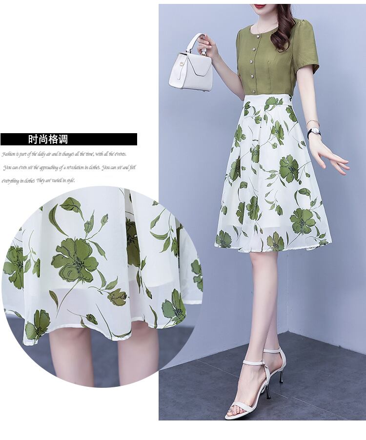 ドレス サマーハイウェストウェストプリント薄手Aラインスカート 大きめサイズ 夏物 muto93597026637