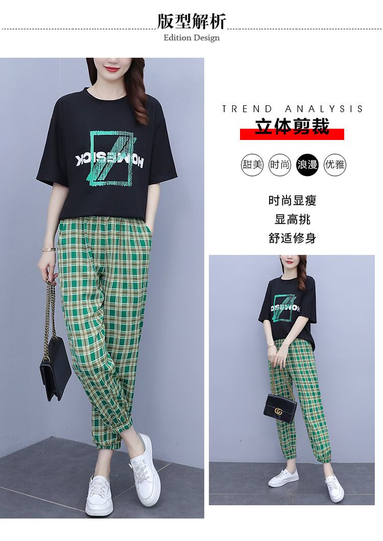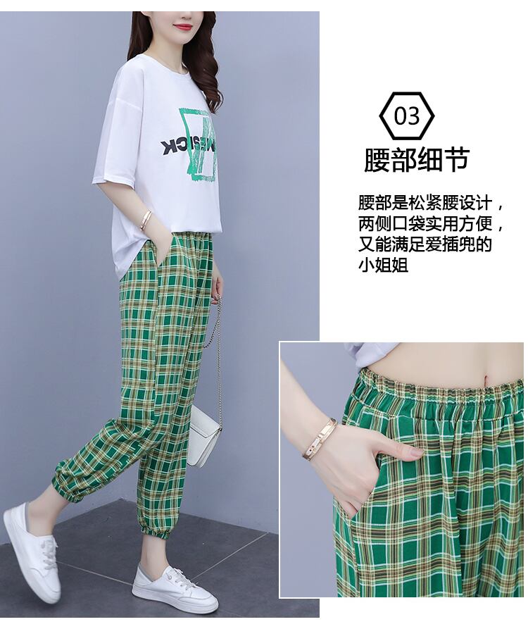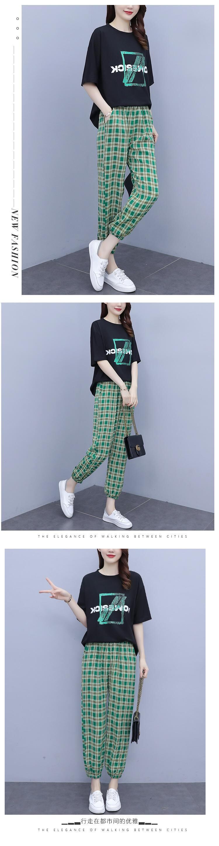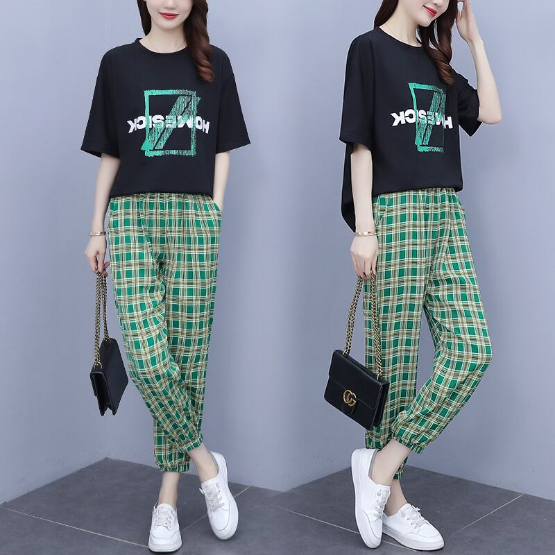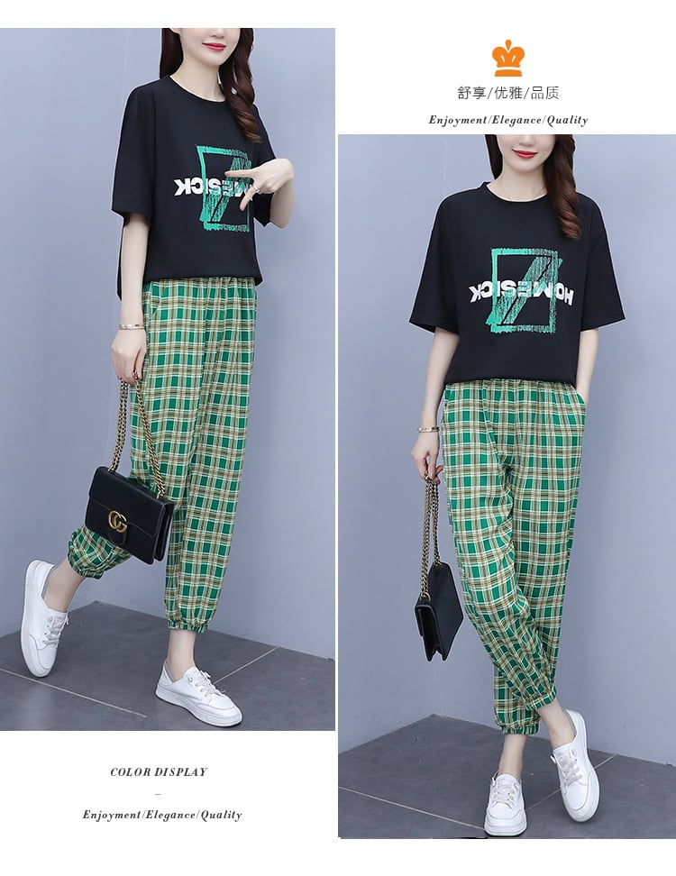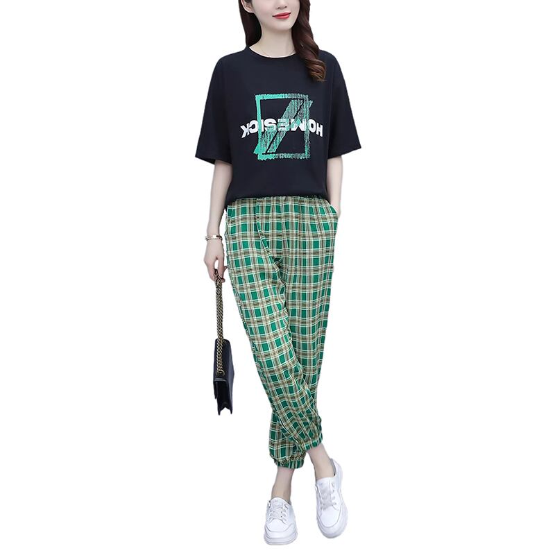 サマールーズプリントTシャツ 格子柄パンツ 大きめサイズ 夏物 muto75324208141