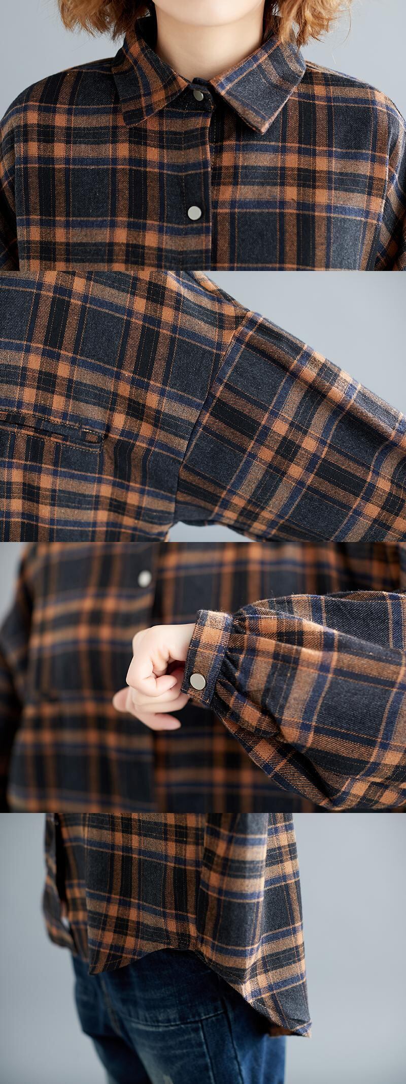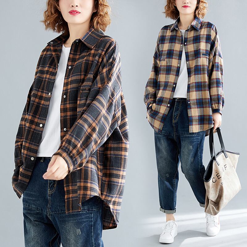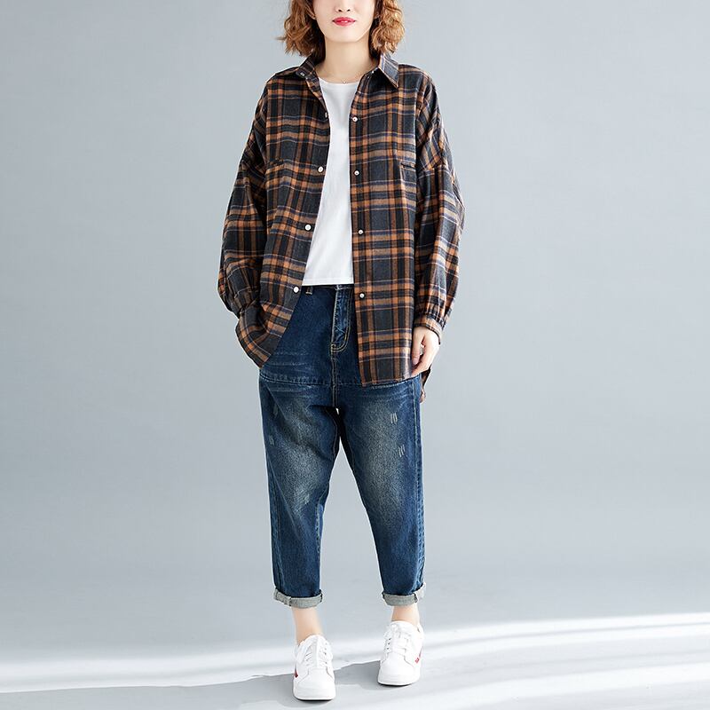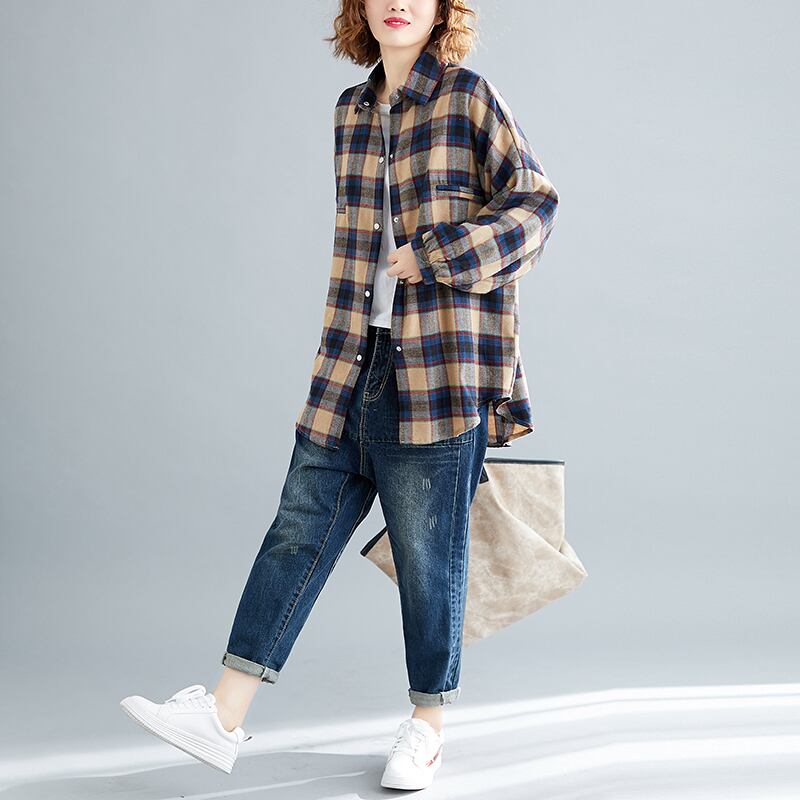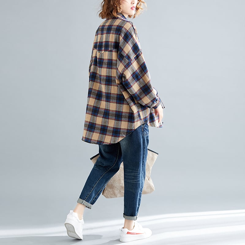 シャツ ルーズトップス スプリング格子柄 大きめサイズ 春物 muto22278442151
