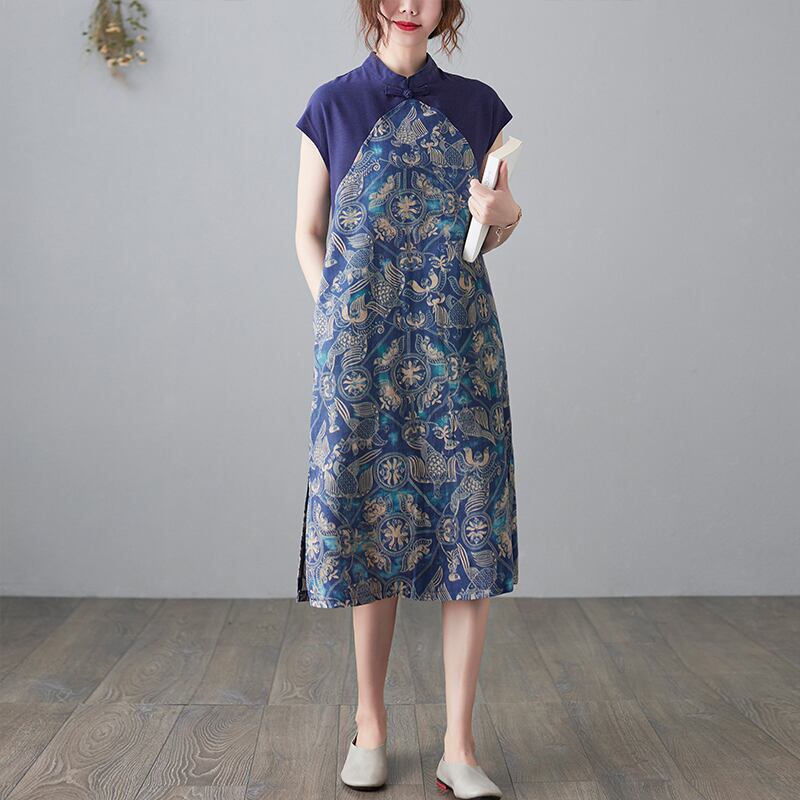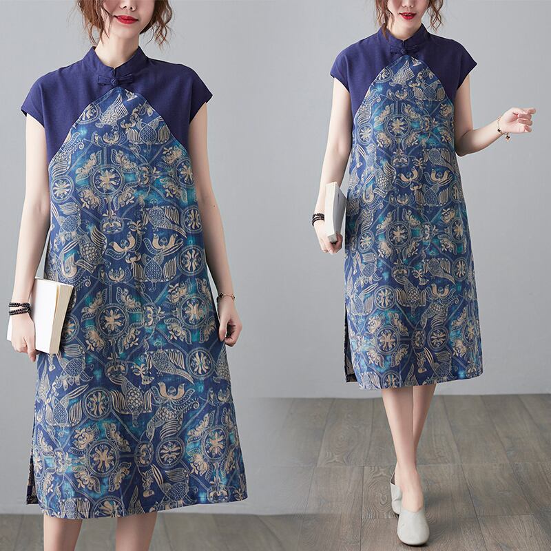 薄手サマーカラープリントスカート ルーズドレス コットン 大きめサイズ 夏物 ステッチ muto8723578063