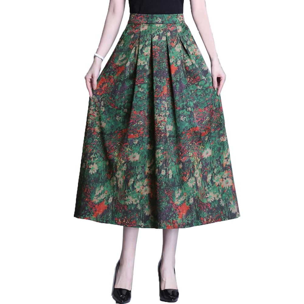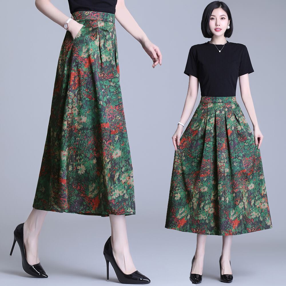 フローラルロングスカート サマーハイウェスト 大きめサイズ 夏物 花柄 muto98652651175