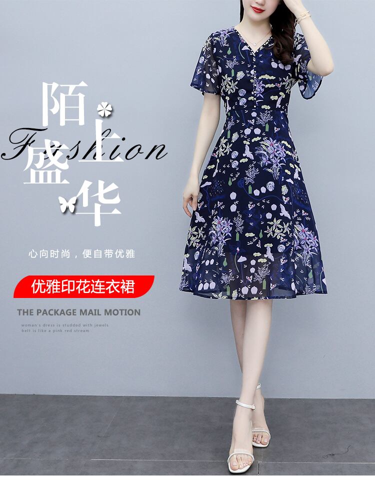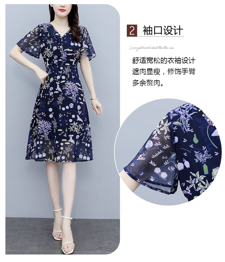 サマードレス Vネックシフォンフローラルスリムスカート 大きめサイズ 夏物 花柄 muto75945844438