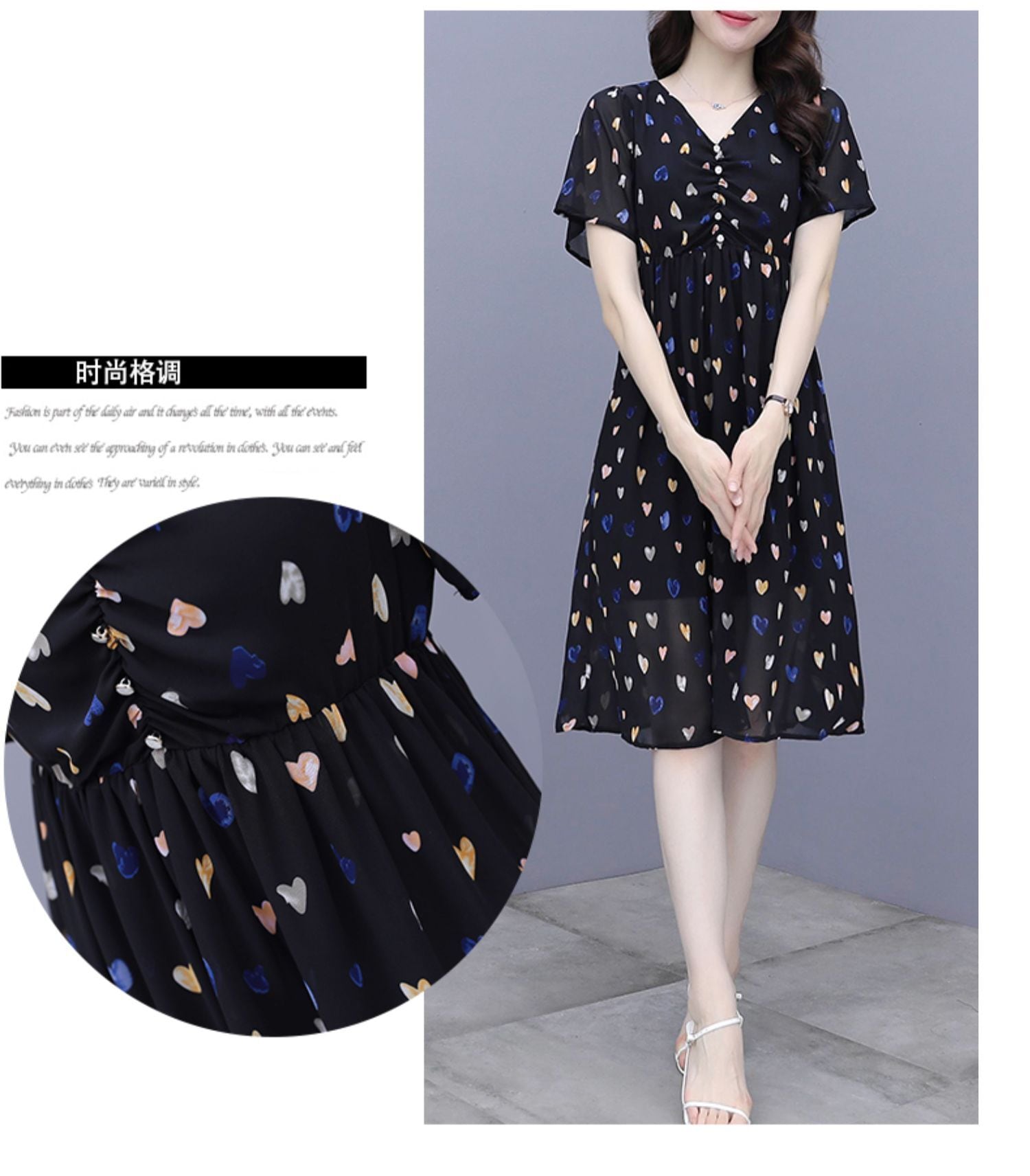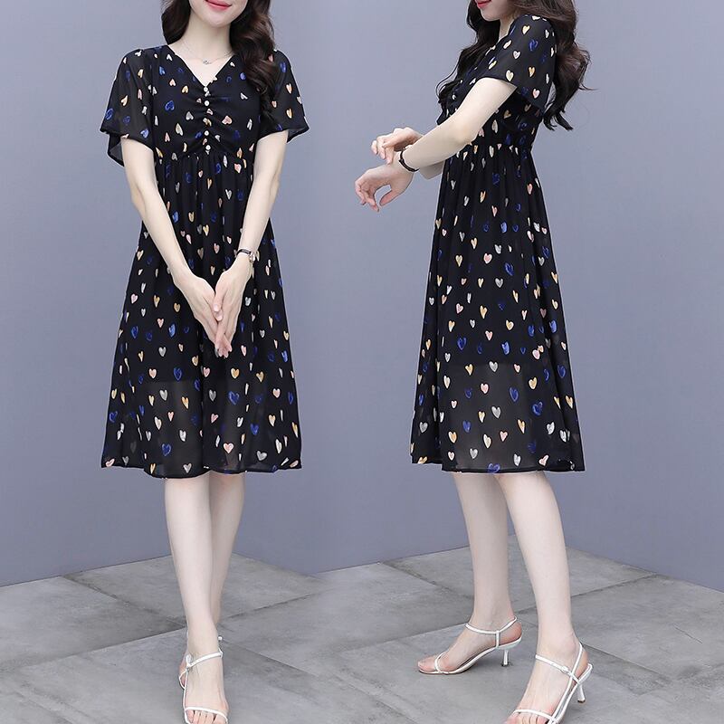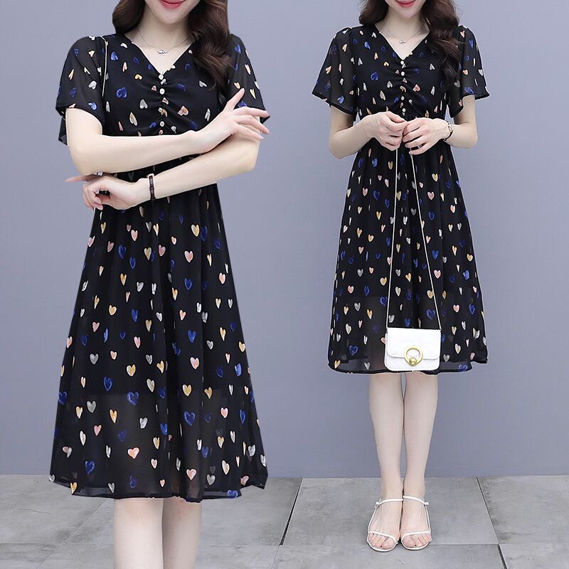 サマードレス スタイルVネックシフォンスカート 大きめサイズ 大人ガーリー スウィート キュート カジュアル 夏物 muto17187776047