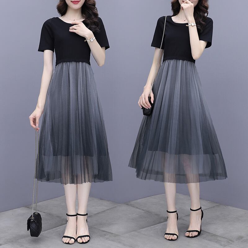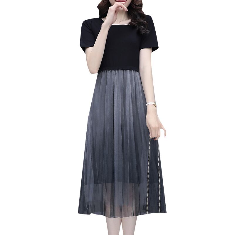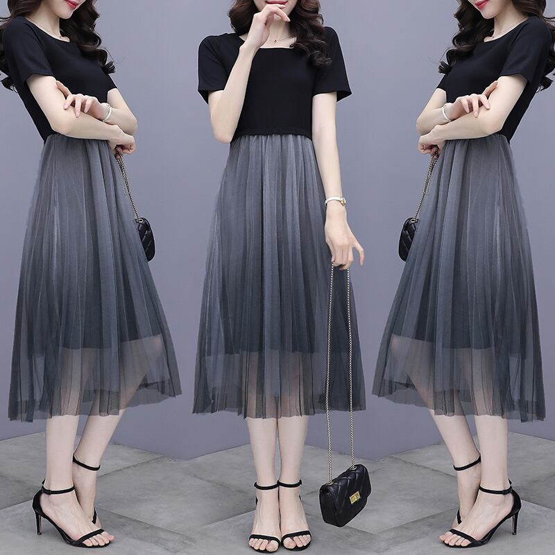 ドレス サマーブラックメッシュスカート 大きめサイズ 夏物 muto29512190077