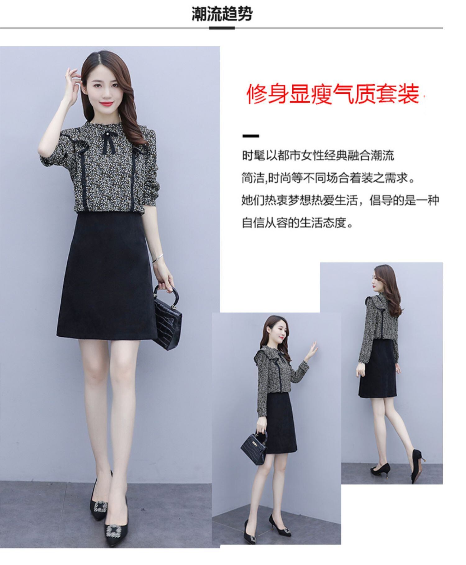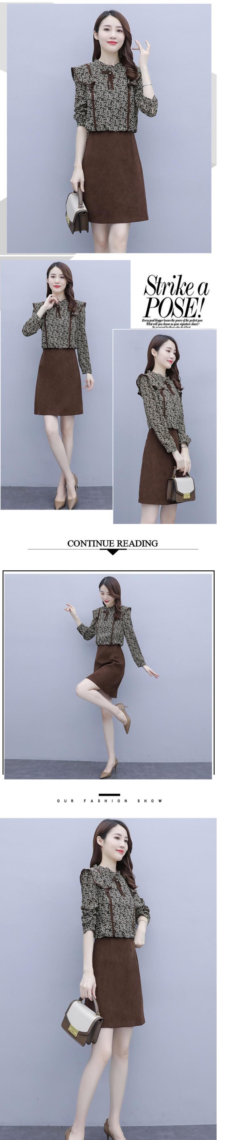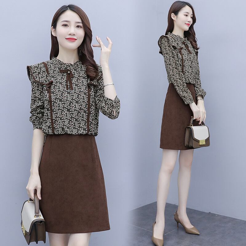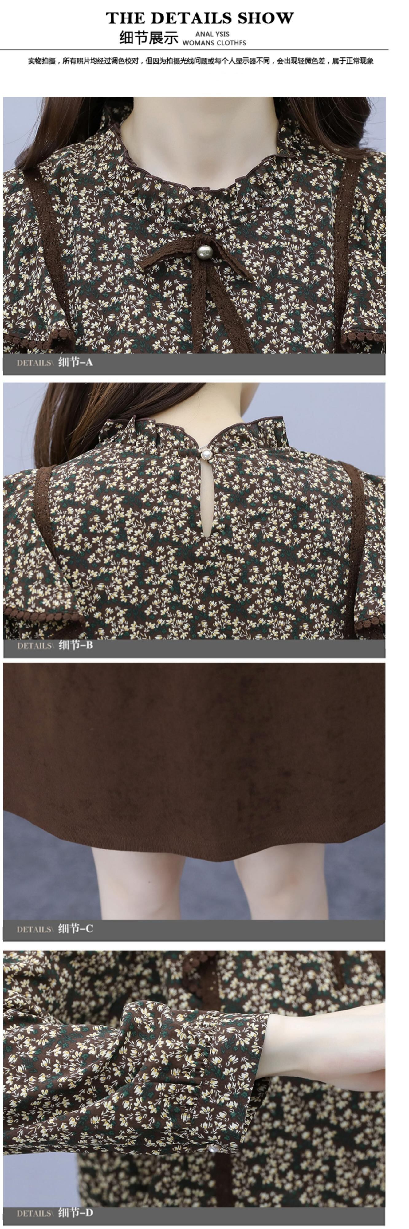 スプリングオータム薄手カラーツーピースフローラルドレス 大きめサイズ 春物 秋物 花柄 ステッチ muto58540837659