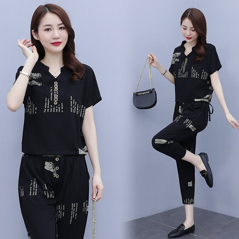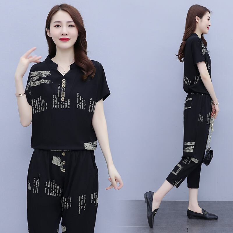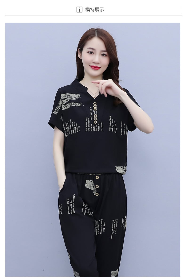 サマーカジュアルVネックプリントTシャツ コットン 大きめサイズ 夏物 muto34090133287