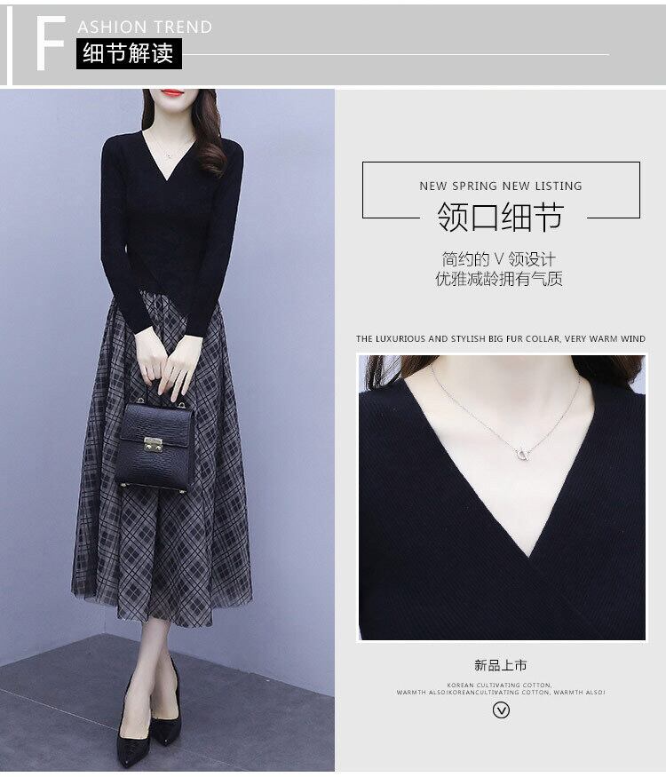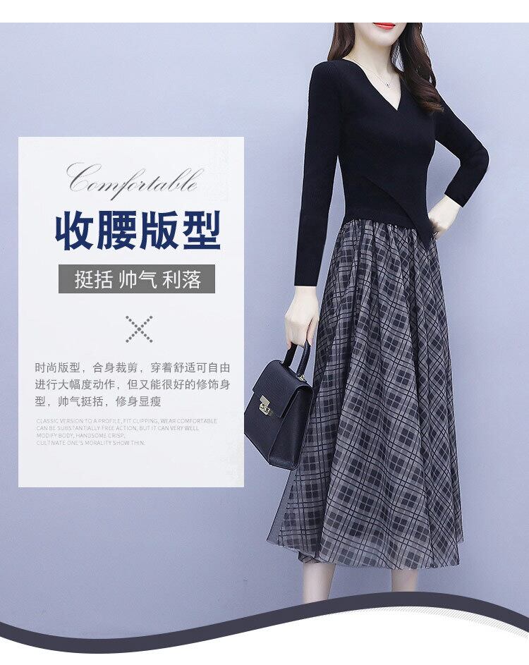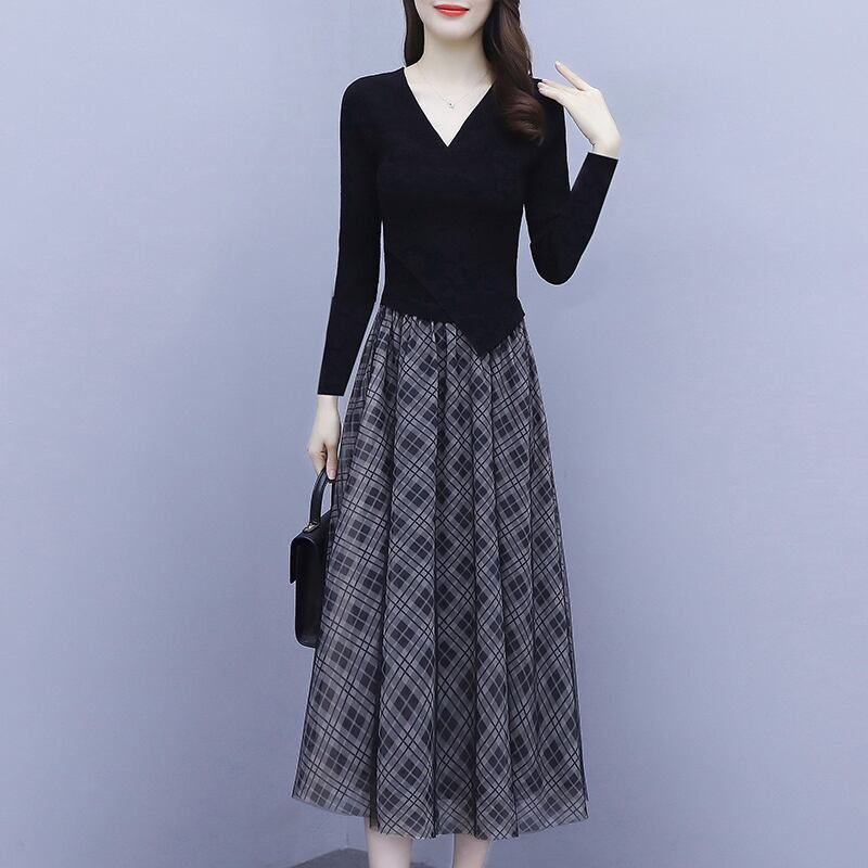 メッシュ格子柄ドレス オータムウェストスリムロングスカート 大きめサイズ 秋物 muto3928339215
